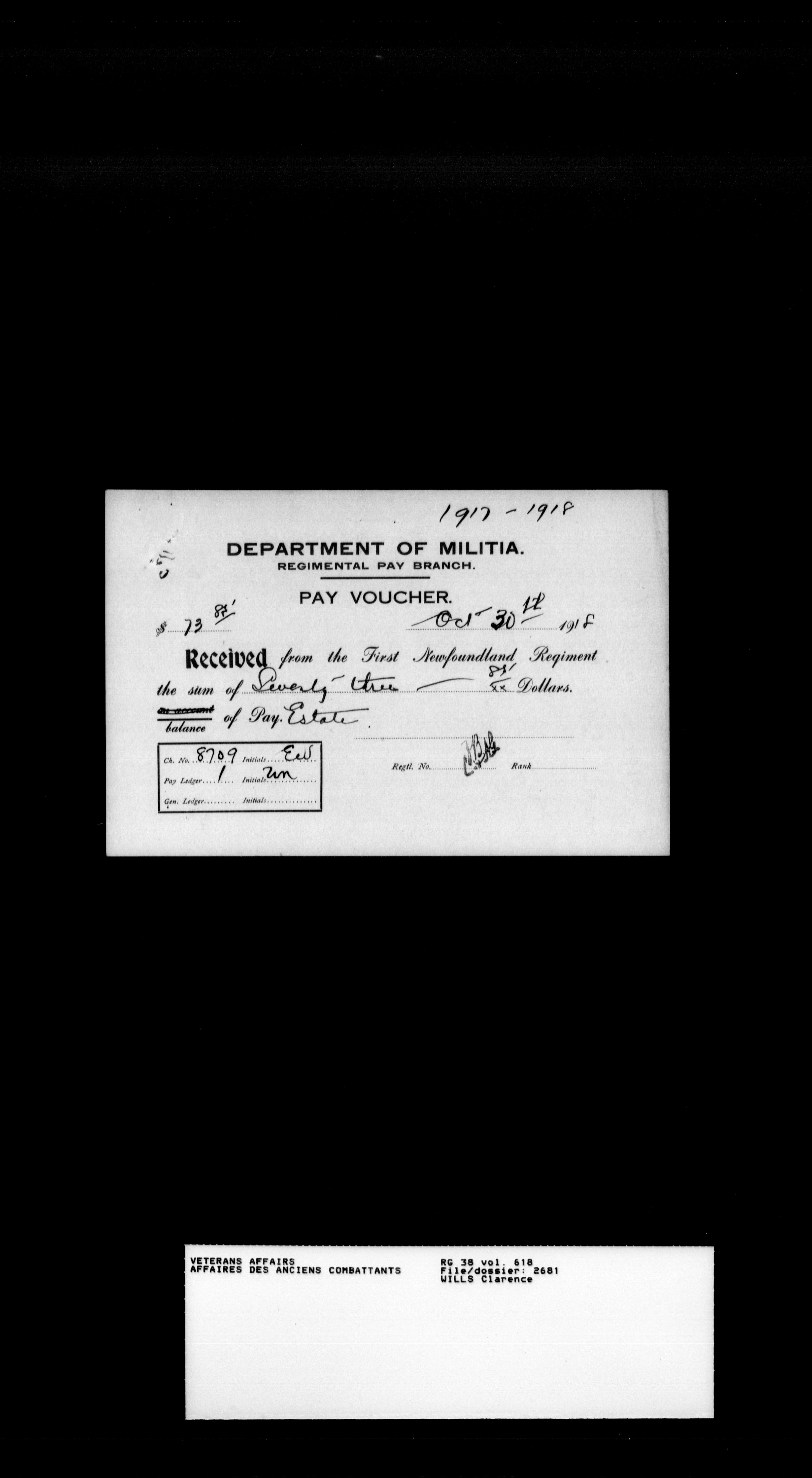 Military service files for members of the Royal Newfoundland Regiment and bandsmen and the Newfoundland Forestry Corps (1914-1919) - 18166