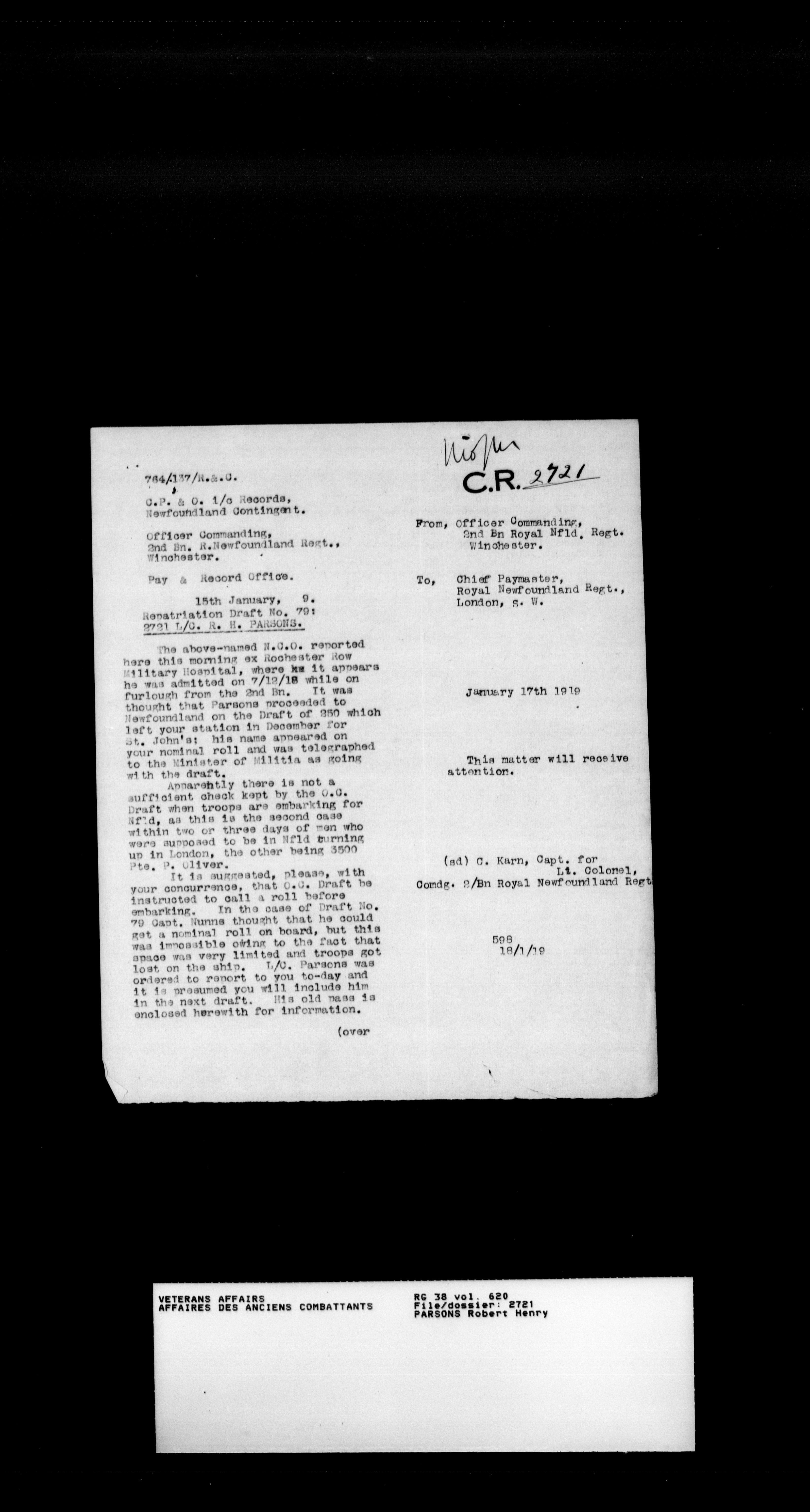 Military service files for members of the Royal Newfoundland Regiment and bandsmen and the Newfoundland Forestry Corps (1914-1919) - 18167