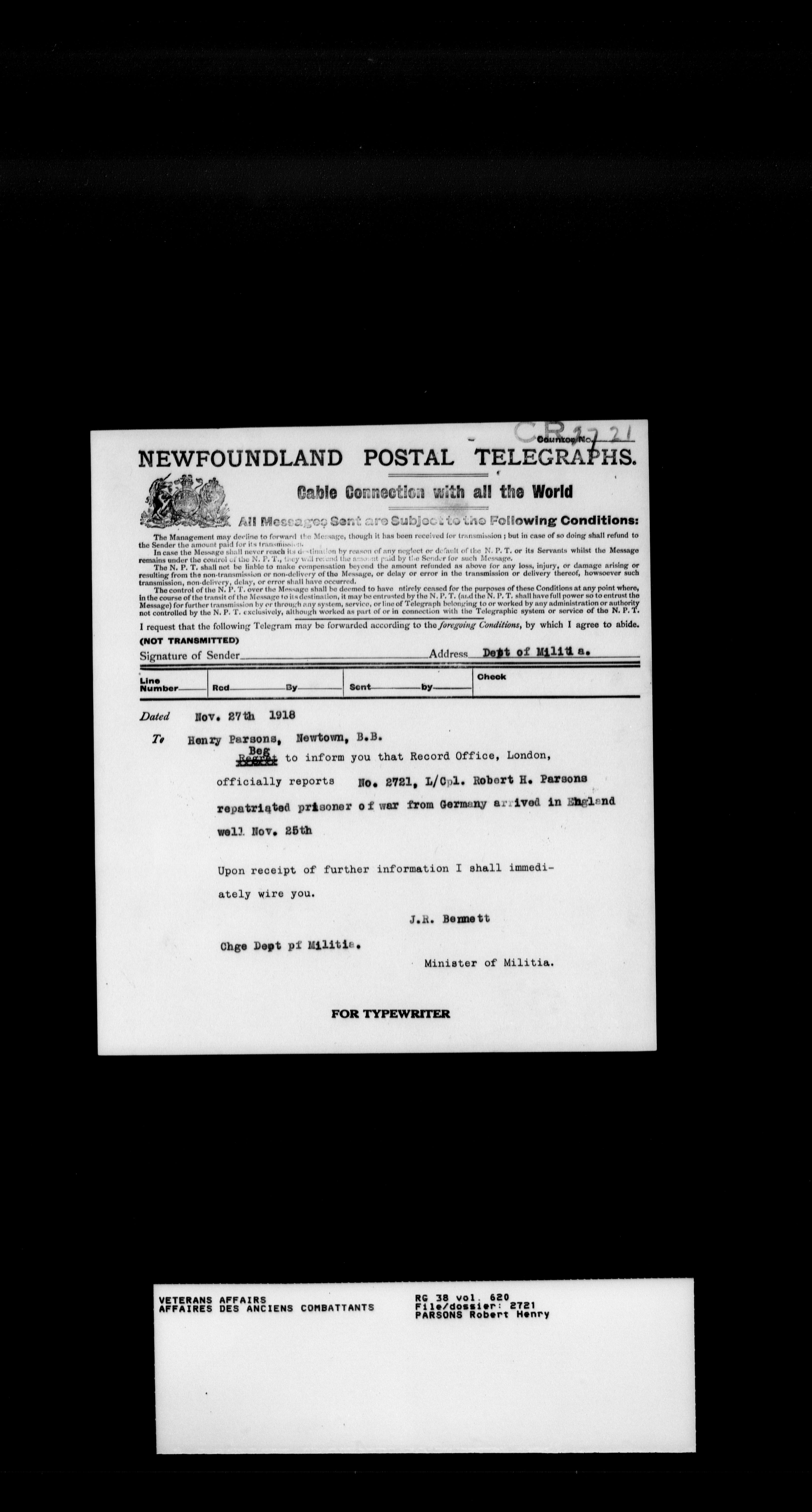 Military service files for members of the Royal Newfoundland Regiment and bandsmen and the Newfoundland Forestry Corps (1914-1919) - 18167