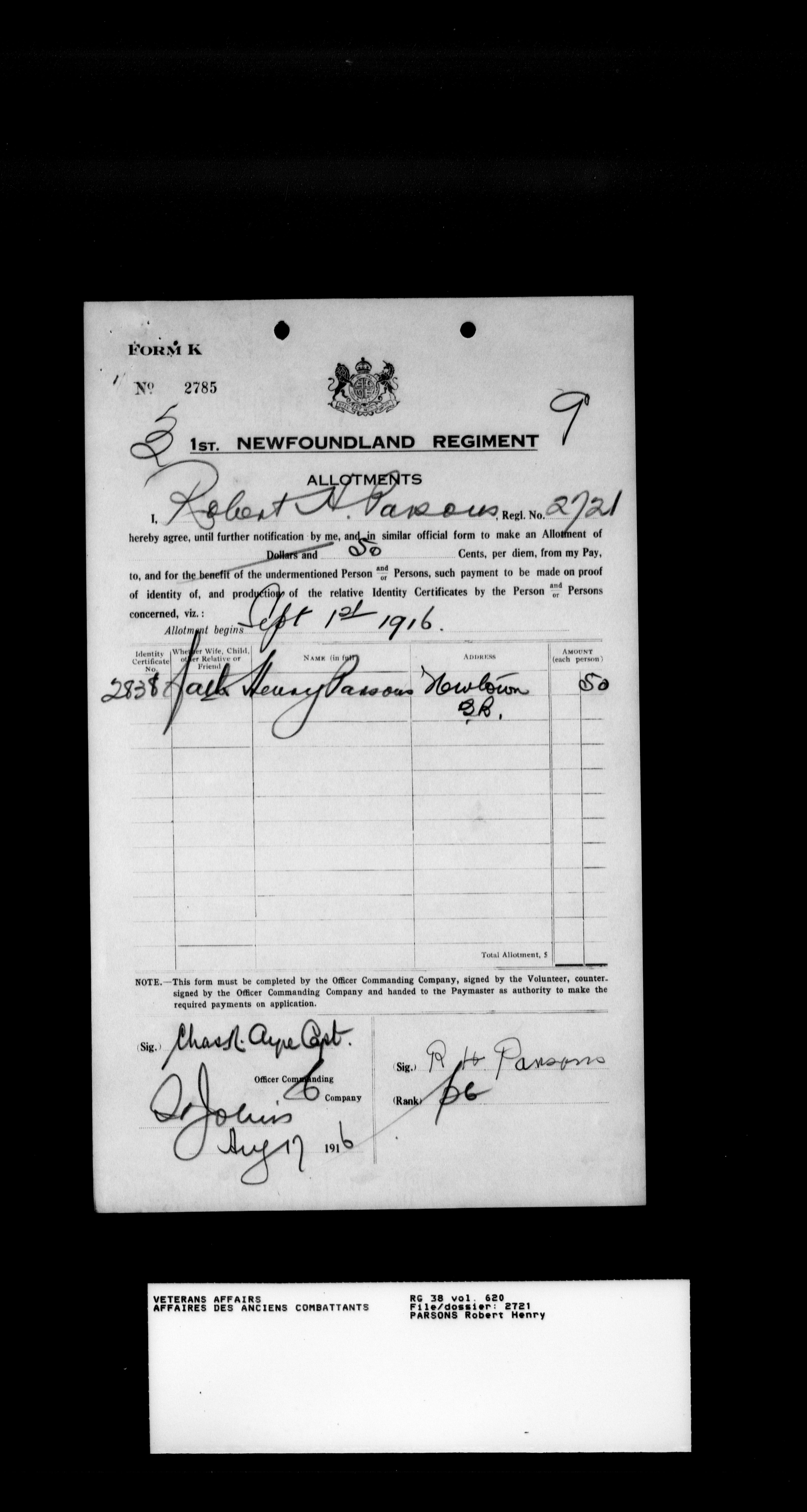 Military service files for members of the Royal Newfoundland Regiment and bandsmen and the Newfoundland Forestry Corps (1914-1919) - 18168