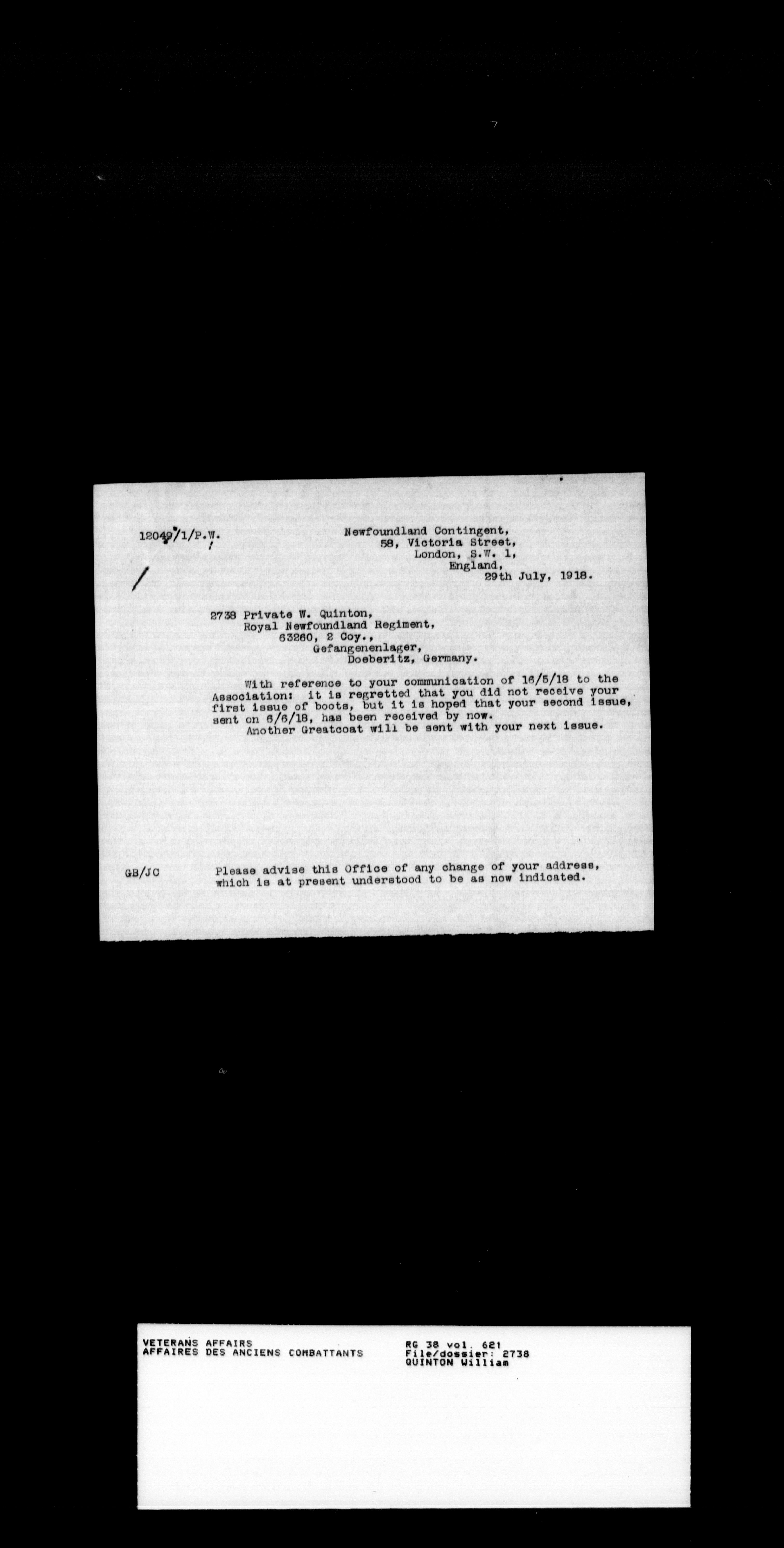 Military service files for members of the Royal Newfoundland Regiment and bandsmen and the Newfoundland Forestry Corps (1914-1919) - 18169