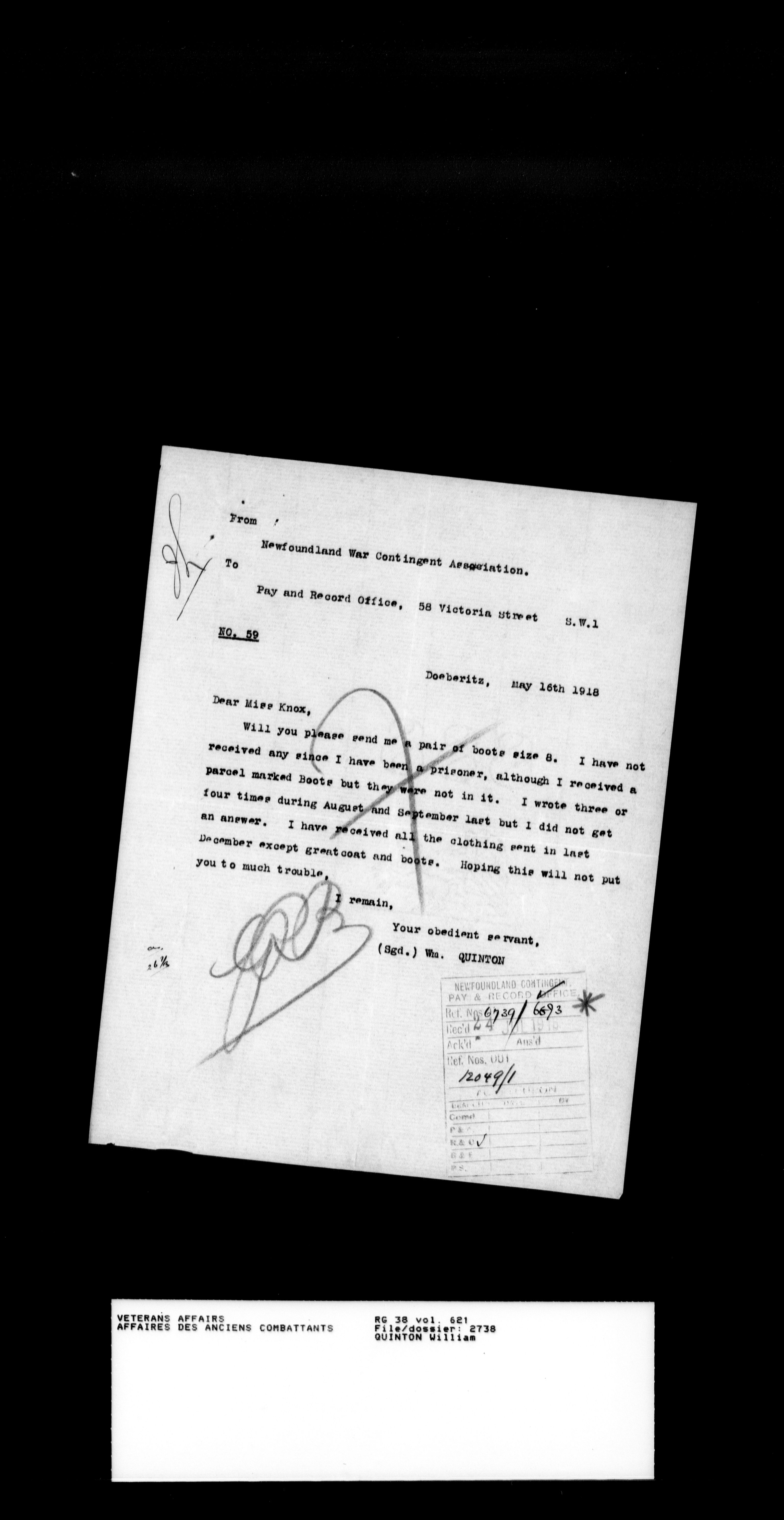 Military service files for members of the Royal Newfoundland Regiment and bandsmen and the Newfoundland Forestry Corps (1914-1919) - 18169