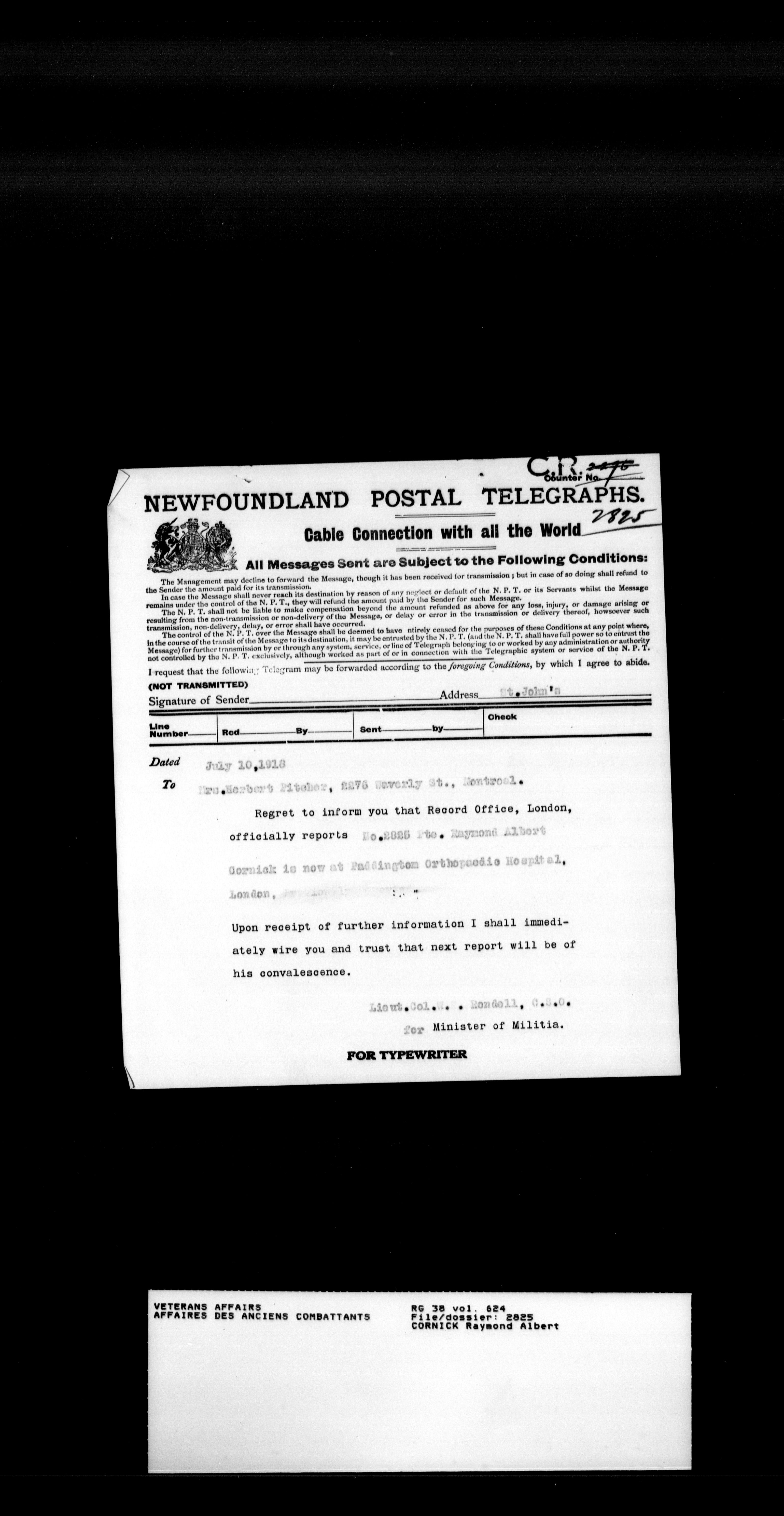 Military service files for members of the Royal Newfoundland Regiment and bandsmen and the Newfoundland Forestry Corps (1914-1919) - 18173