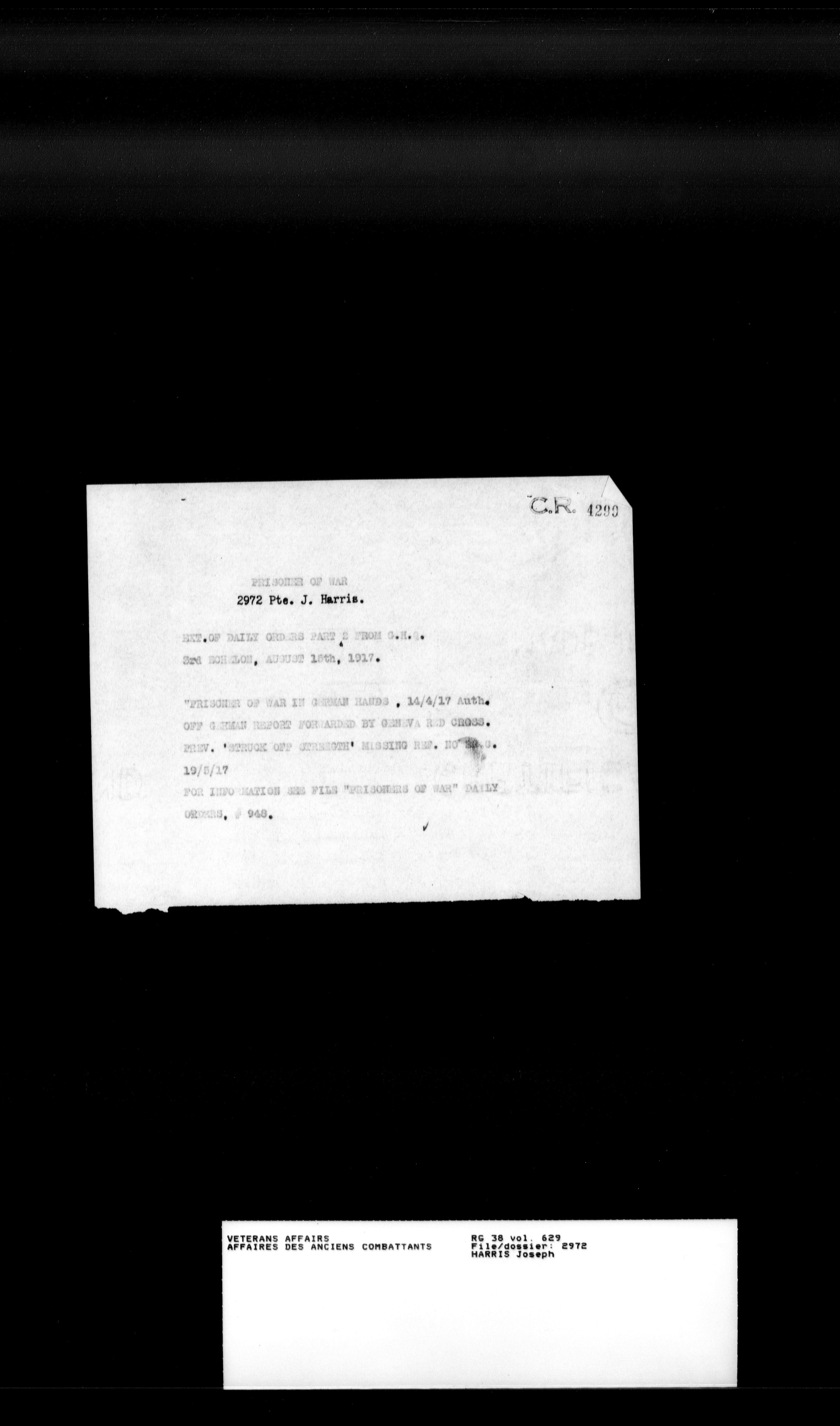 Military service files for members of the Royal Newfoundland Regiment and bandsmen and the Newfoundland Forestry Corps (1914-1919) - 18180