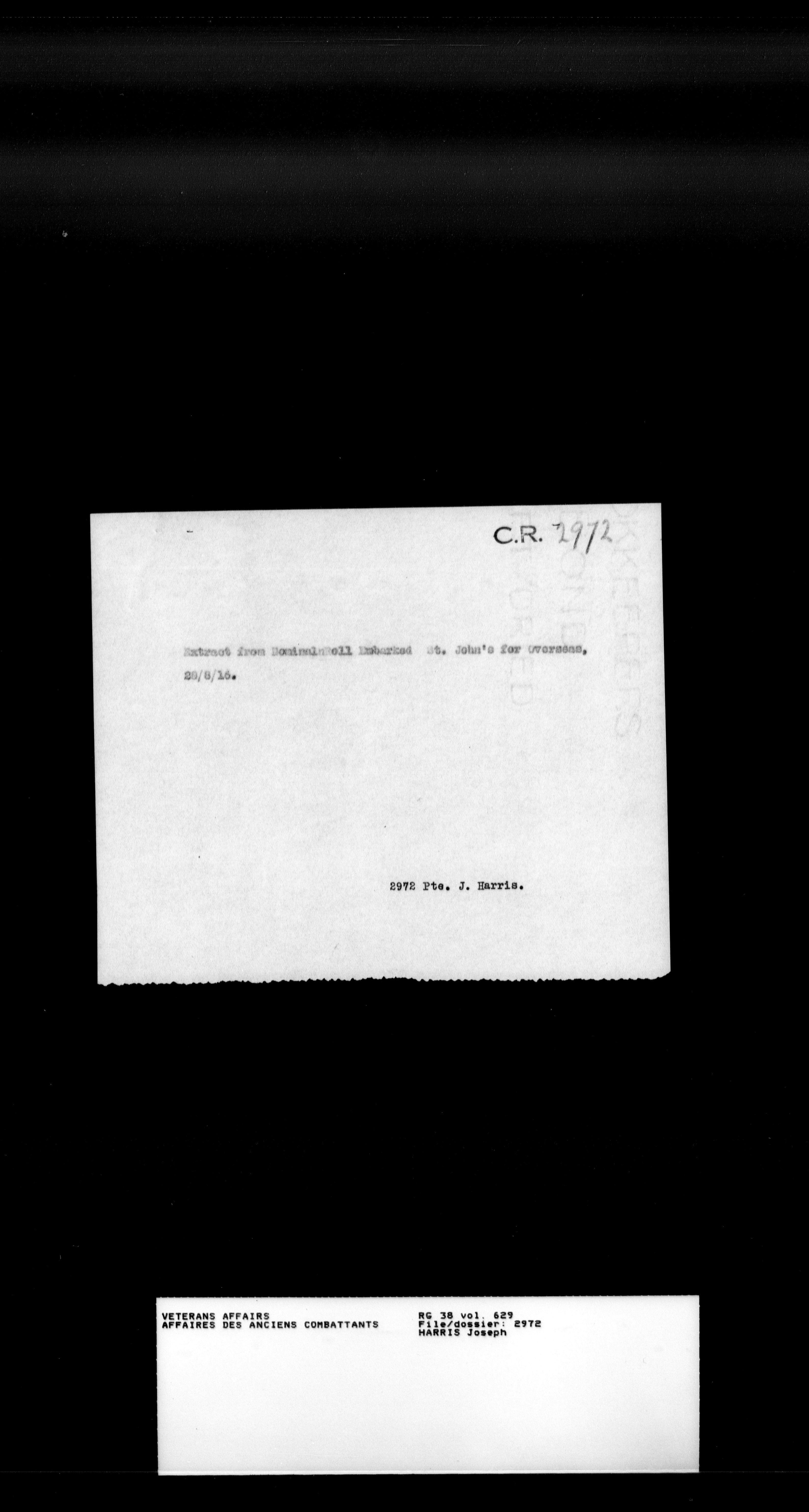 Military service files for members of the Royal Newfoundland Regiment and bandsmen and the Newfoundland Forestry Corps (1914-1919) - 18180