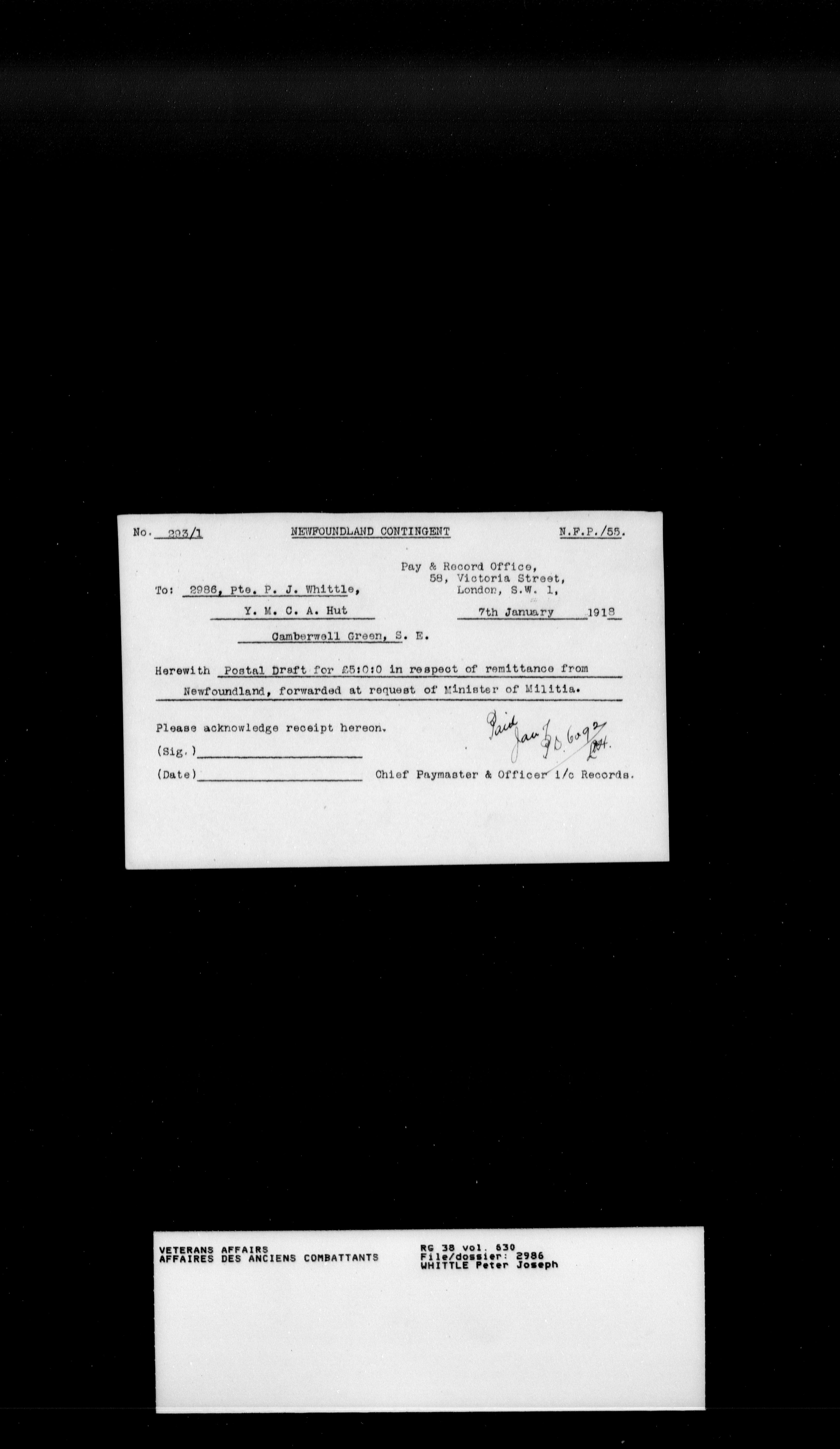 Military service files for members of the Royal Newfoundland Regiment and bandsmen and the Newfoundland Forestry Corps (1914-1919) - 18181