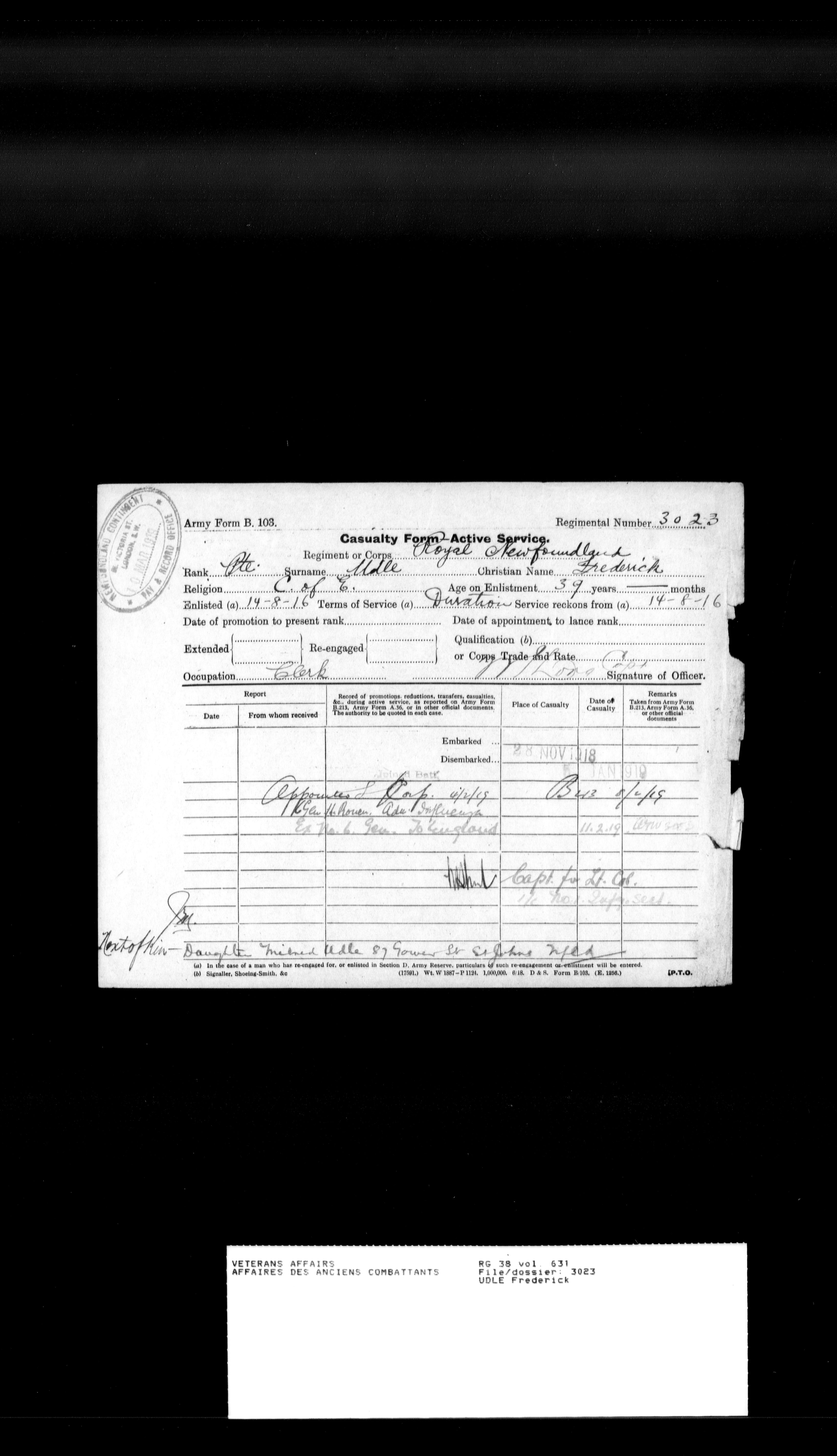 Royal Newfoundland Regiment service files : T-18182