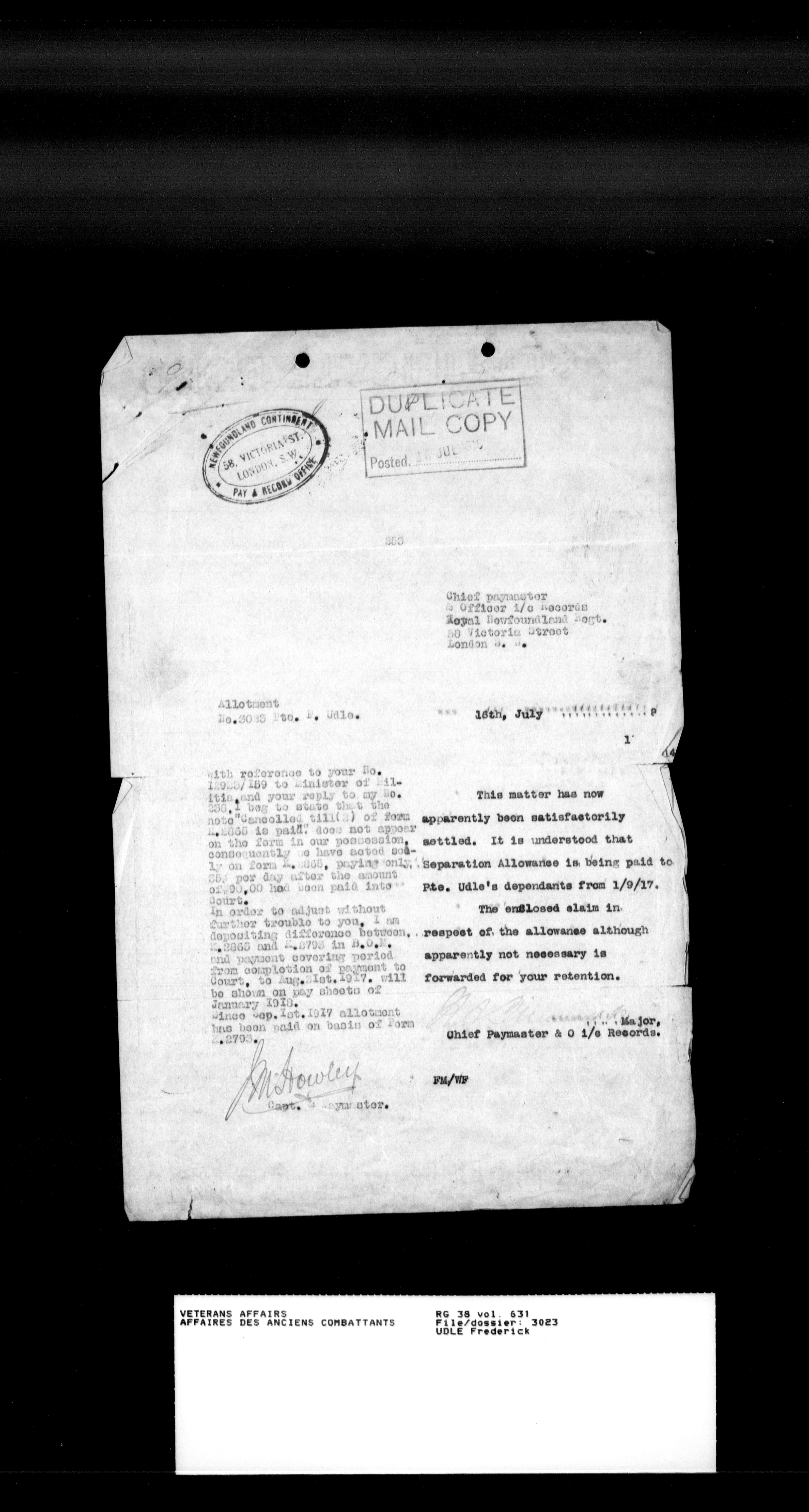Military service files for members of the Royal Newfoundland Regiment and bandsmen and the Newfoundland Forestry Corps (1914-1919) - 18182