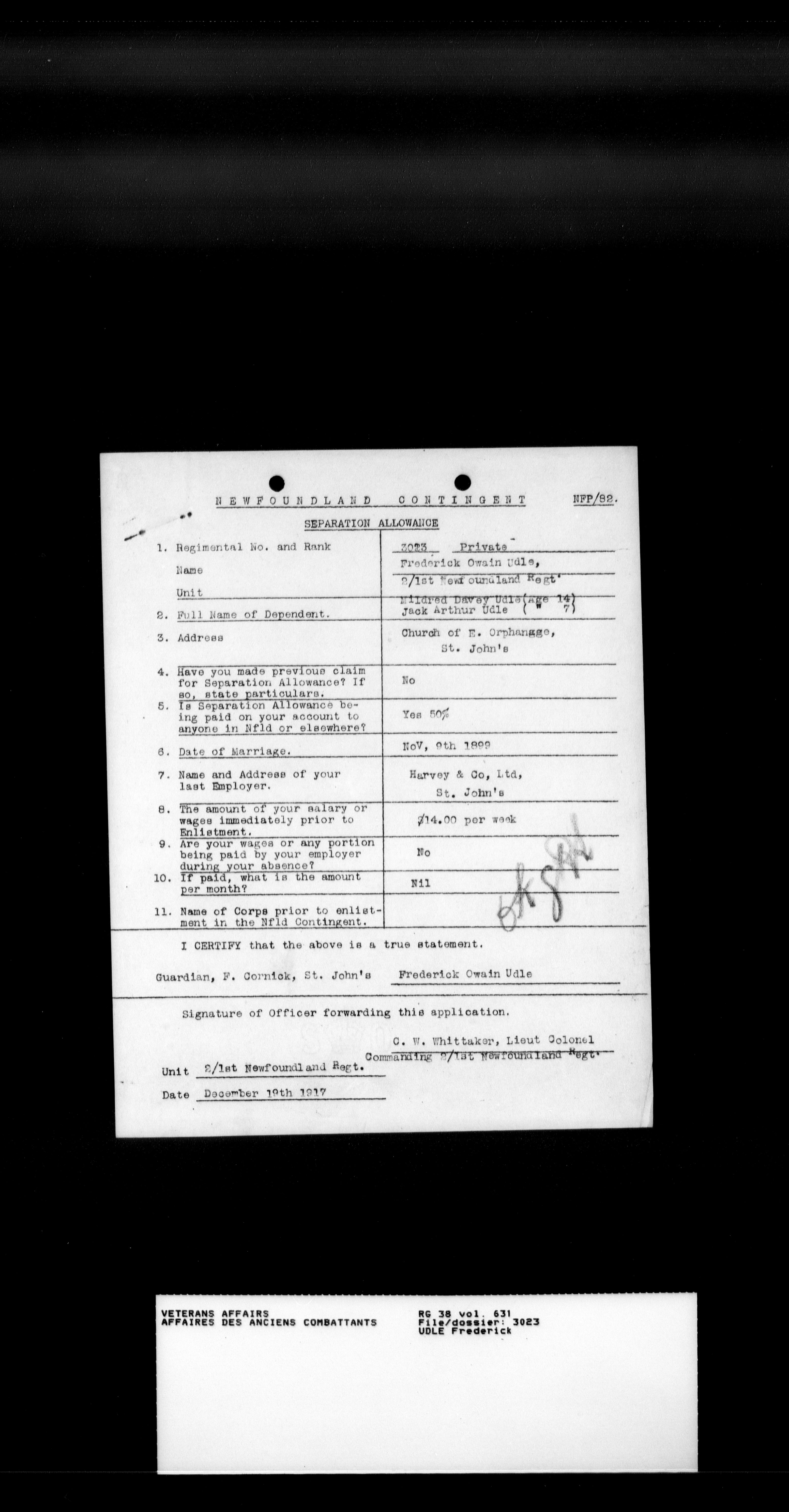 Military service files for members of the Royal Newfoundland Regiment and bandsmen and the Newfoundland Forestry Corps (1914-1919) - 18182