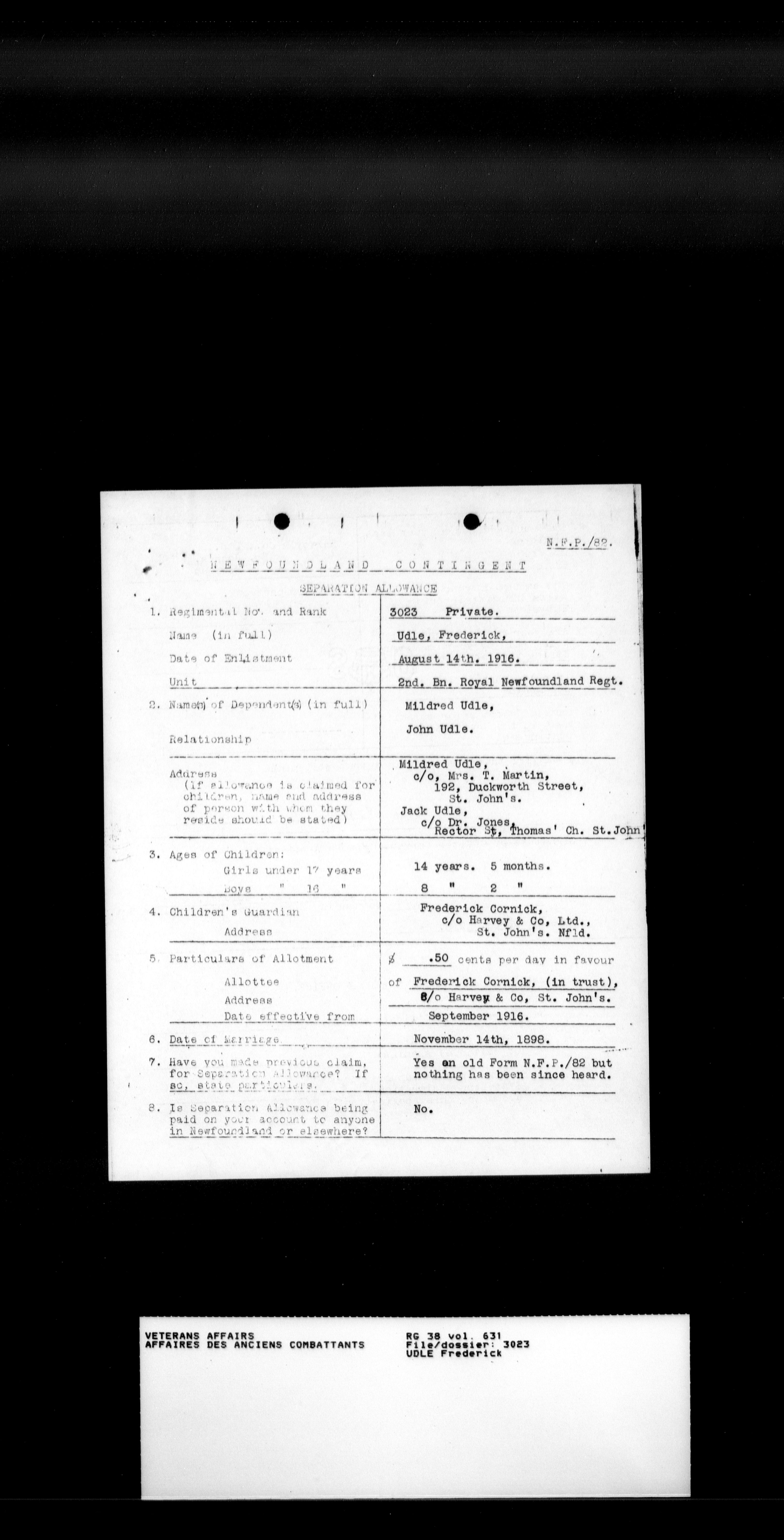 Military service files for members of the Royal Newfoundland Regiment and bandsmen and the Newfoundland Forestry Corps (1914-1919) - 18182