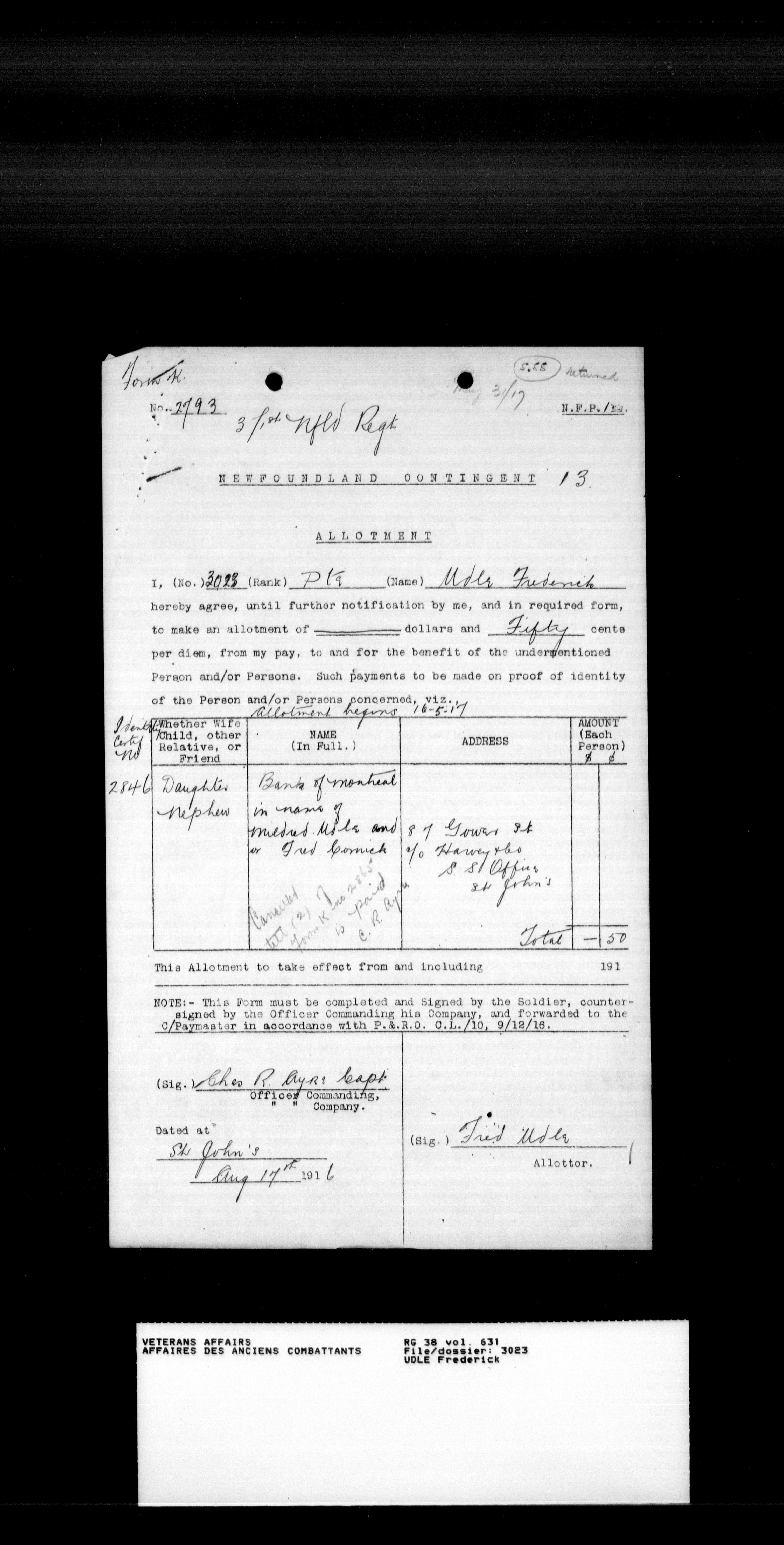 Military service files for members of the Royal Newfoundland Regiment and bandsmen and the Newfoundland Forestry Corps (1914-1919) - 18182