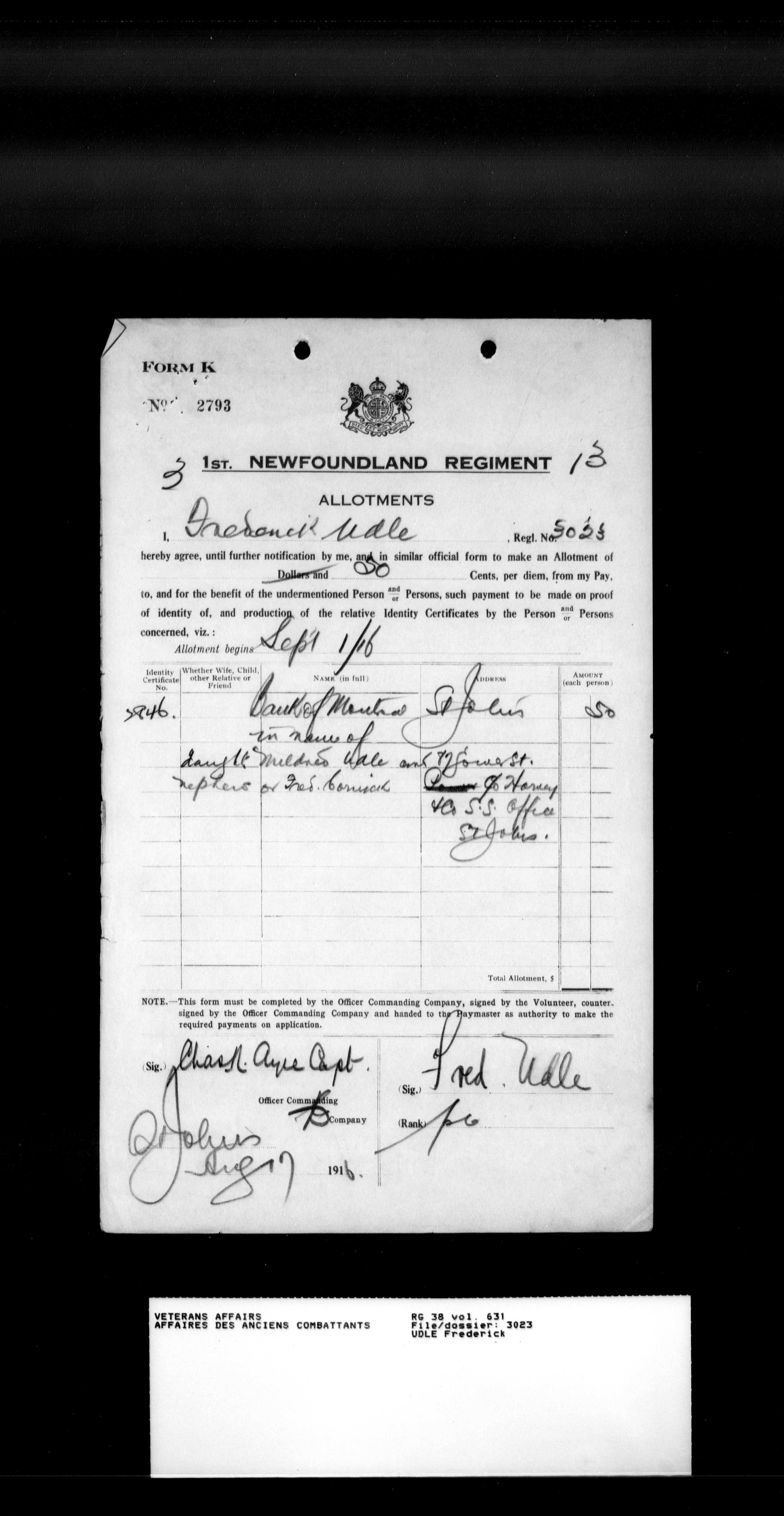 Royal Newfoundland Regiment service files : T-18182