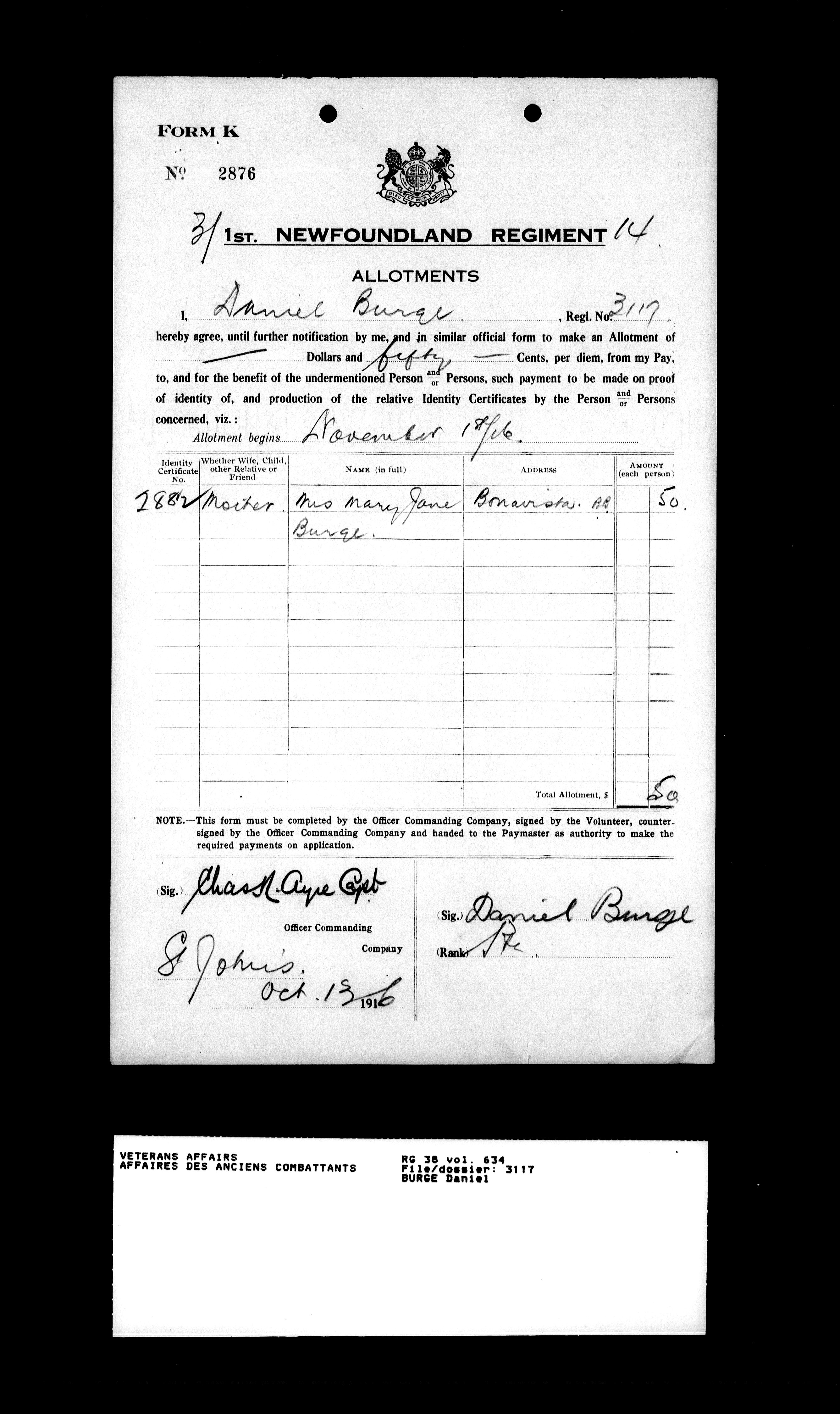 Military service files for members of the Royal Newfoundland Regiment and bandsmen and the Newfoundland Forestry Corps (1914-1919) - 18186