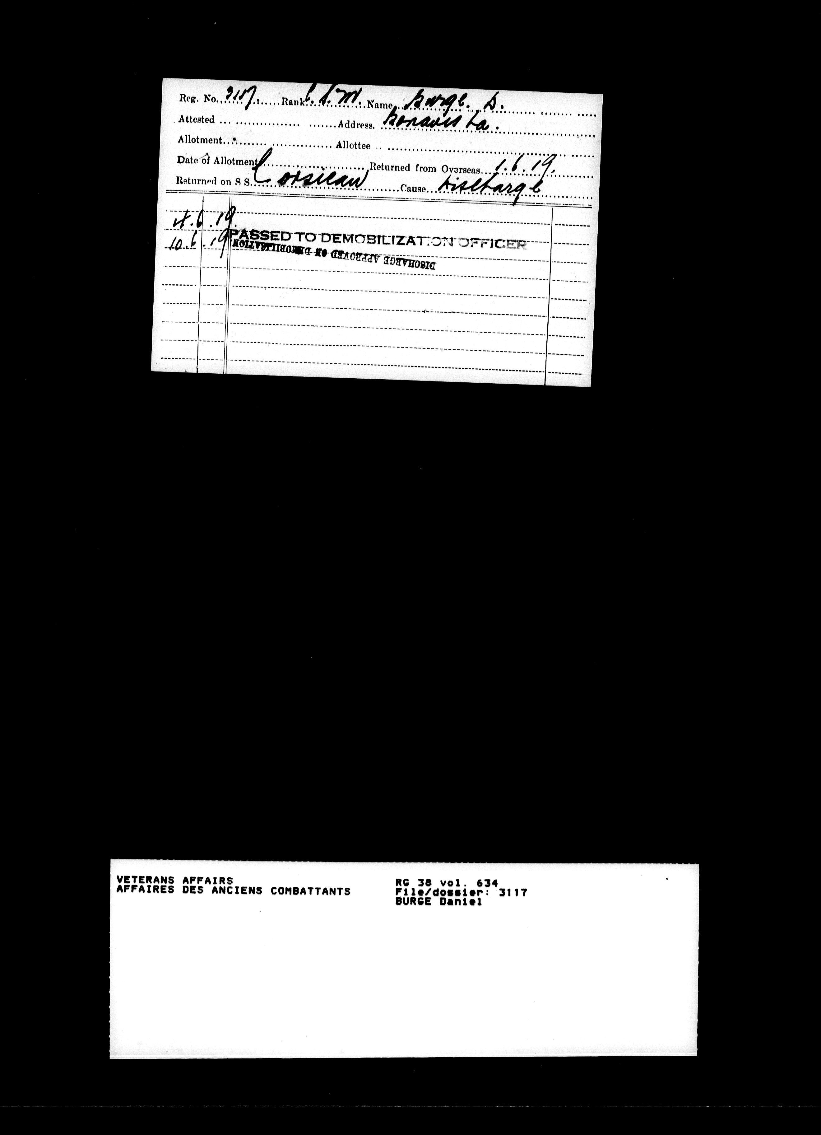 Military service files for members of the Royal Newfoundland Regiment and bandsmen and the Newfoundland Forestry Corps (1914-1919) - 18186