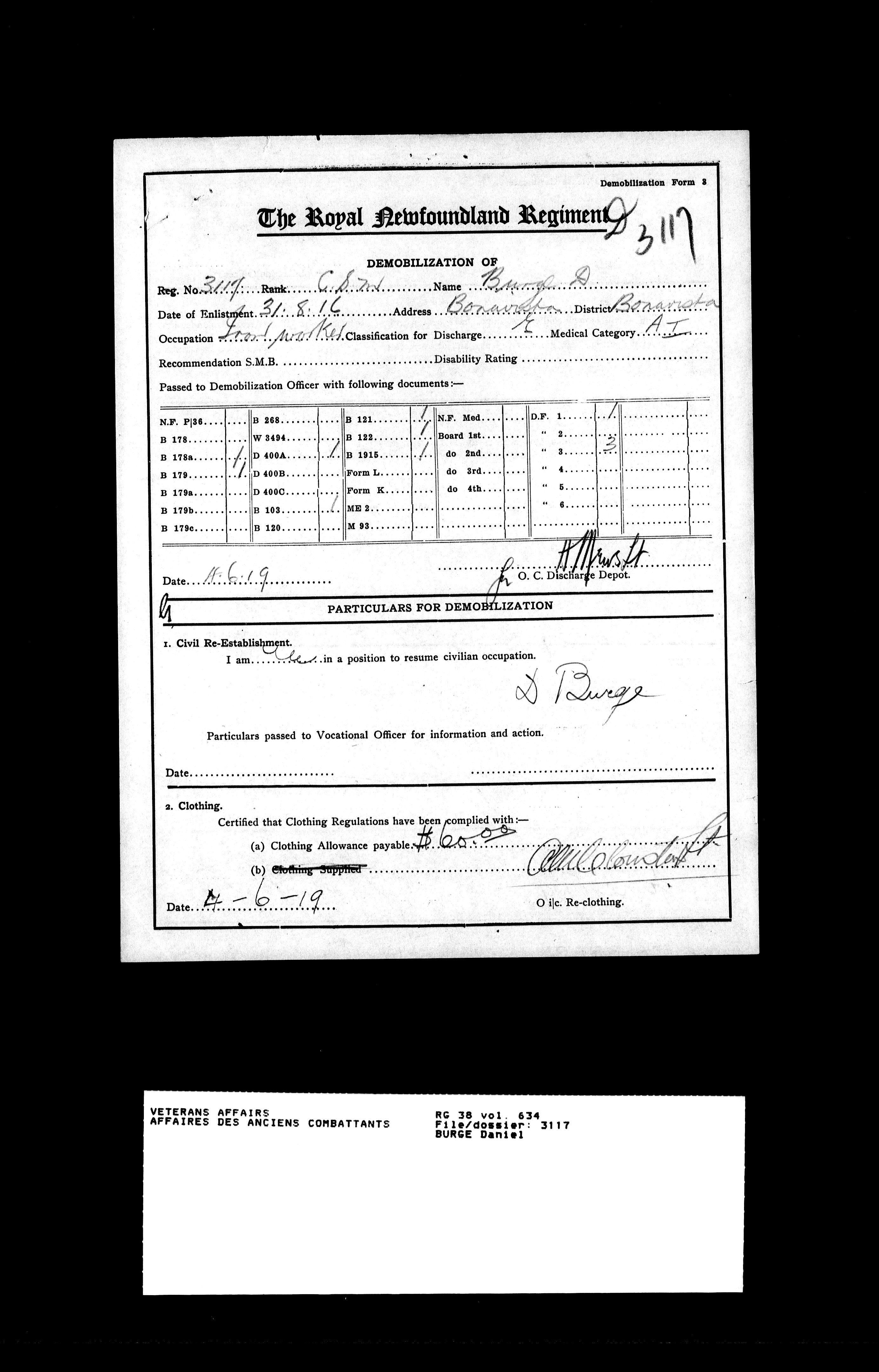 Military service files for members of the Royal Newfoundland Regiment and bandsmen and the Newfoundland Forestry Corps (1914-1919) - 18186