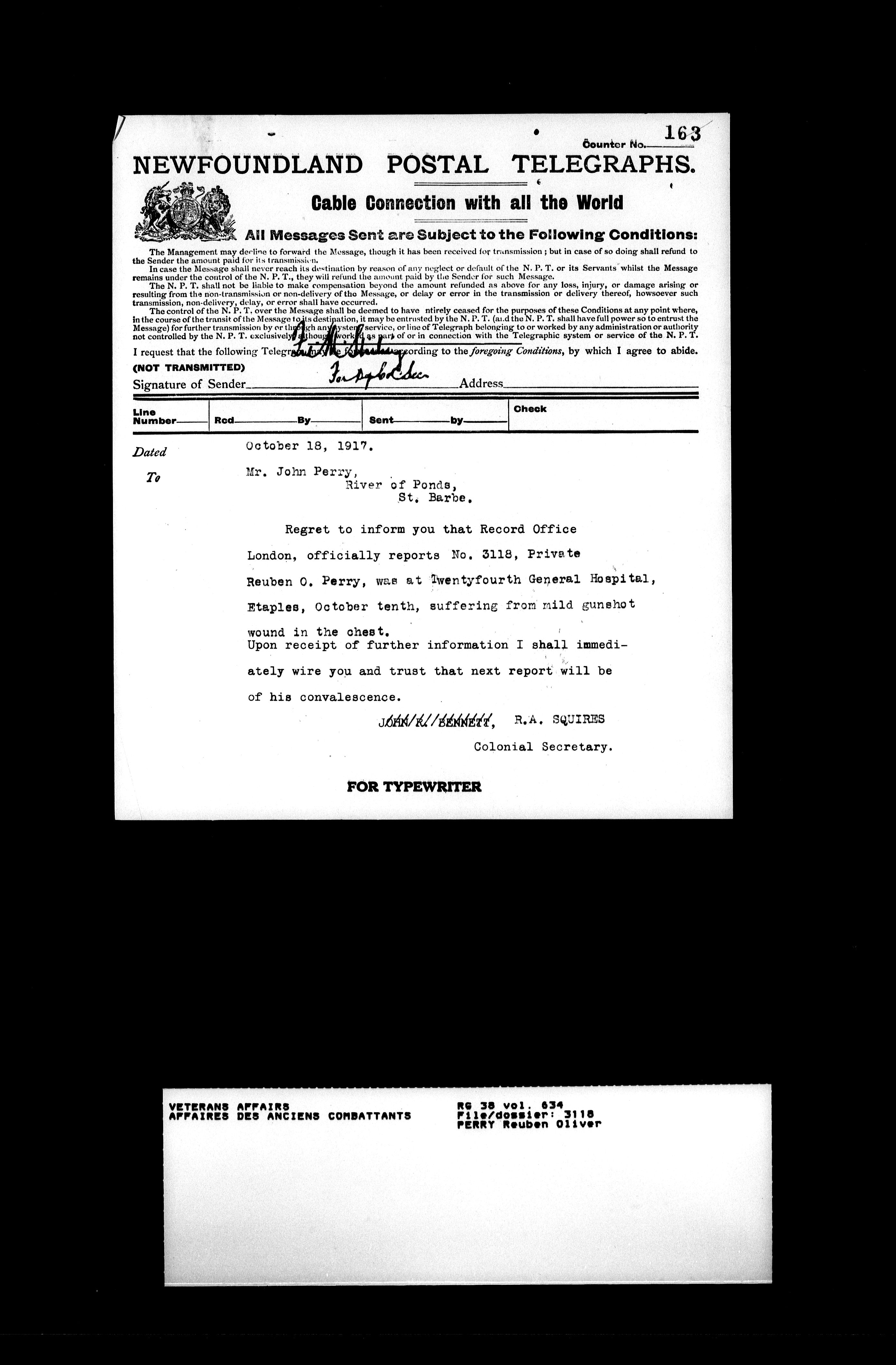 Military service files for members of the Royal Newfoundland Regiment and bandsmen and the Newfoundland Forestry Corps (1914-1919) - 18186