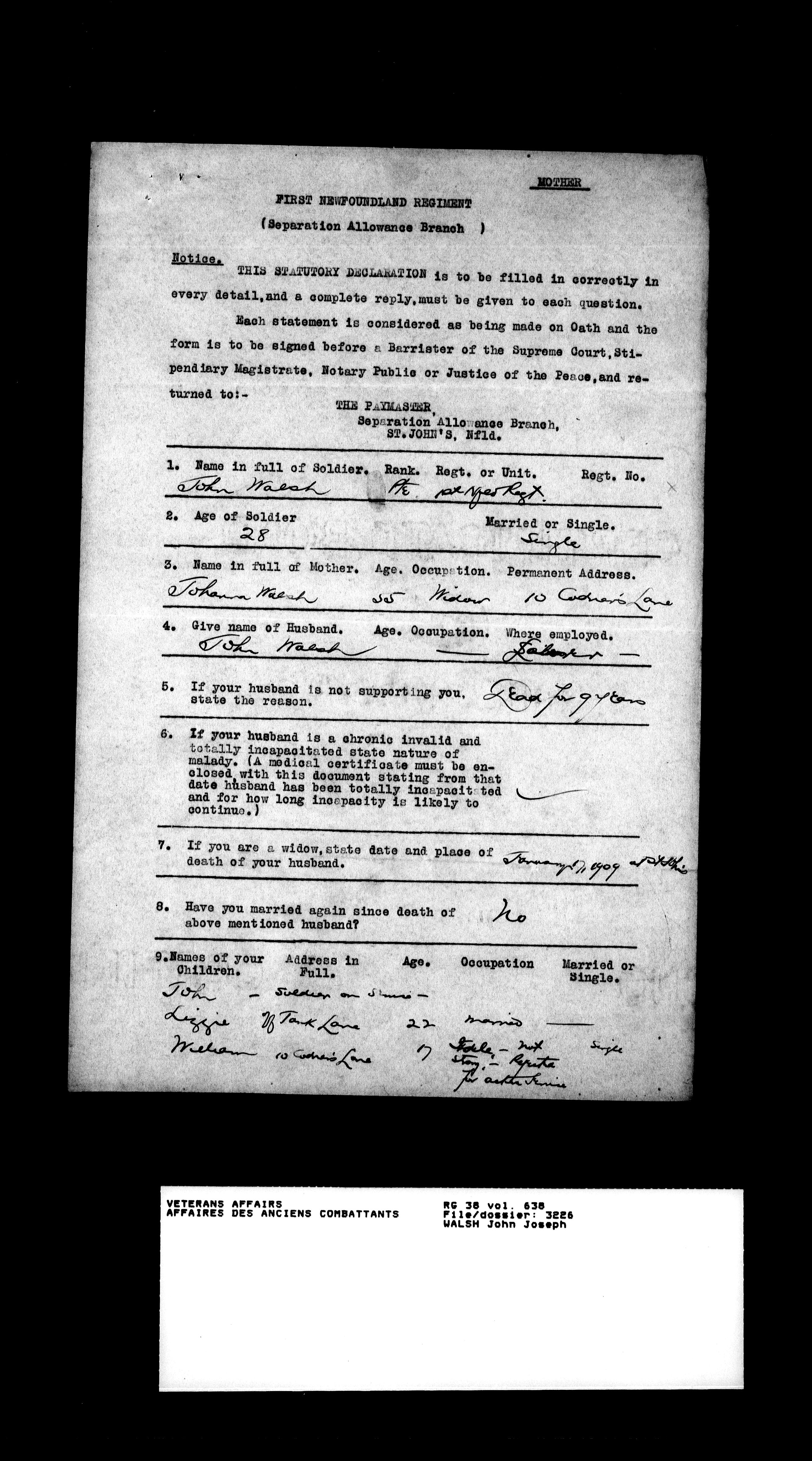 Military service files for members of the Royal Newfoundland Regiment and bandsmen and the Newfoundland Forestry Corps (1914-1919) - 18191