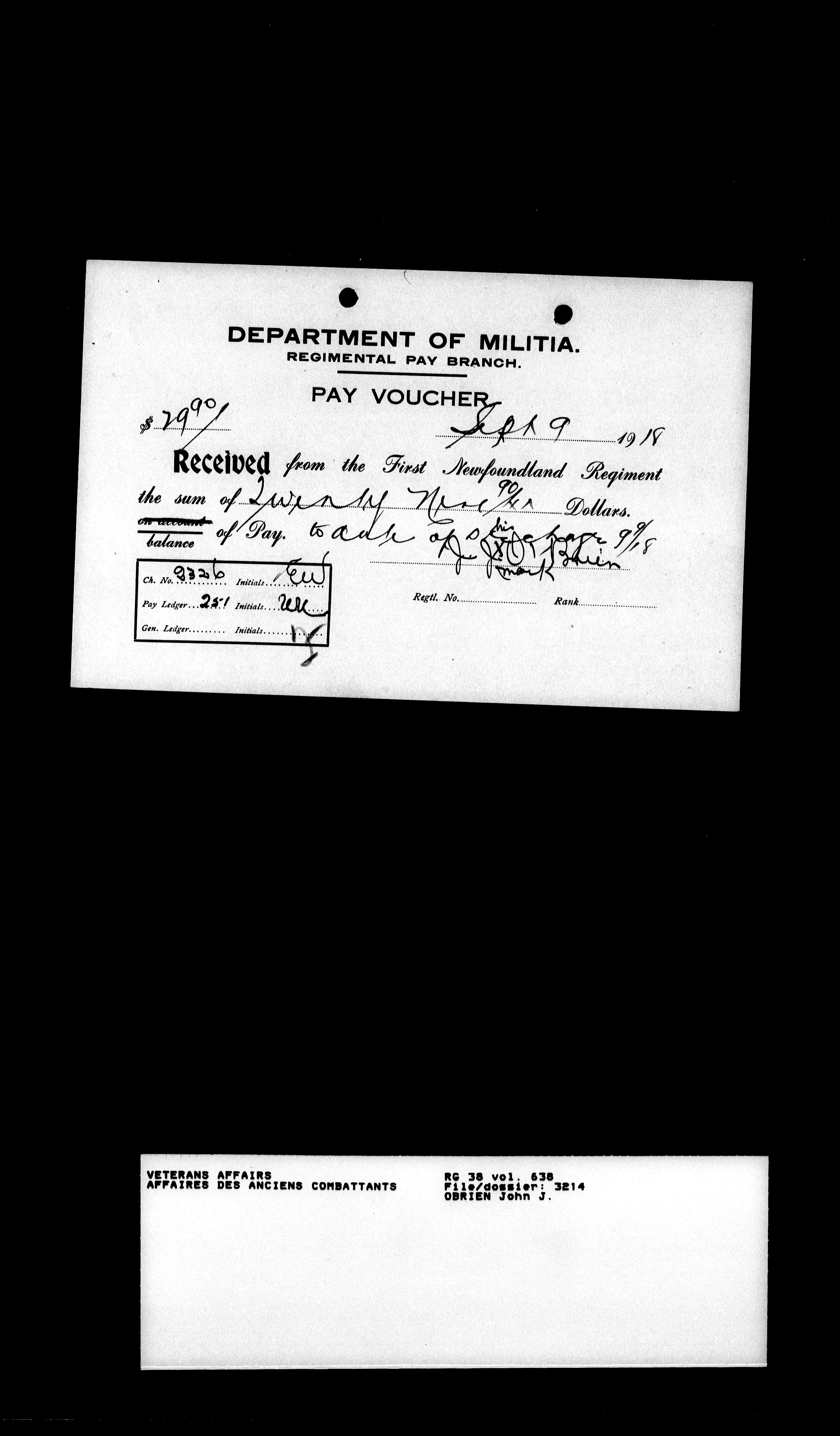 Military service files for members of the Royal Newfoundland Regiment and bandsmen and the Newfoundland Forestry Corps (1914-1919) - 18191