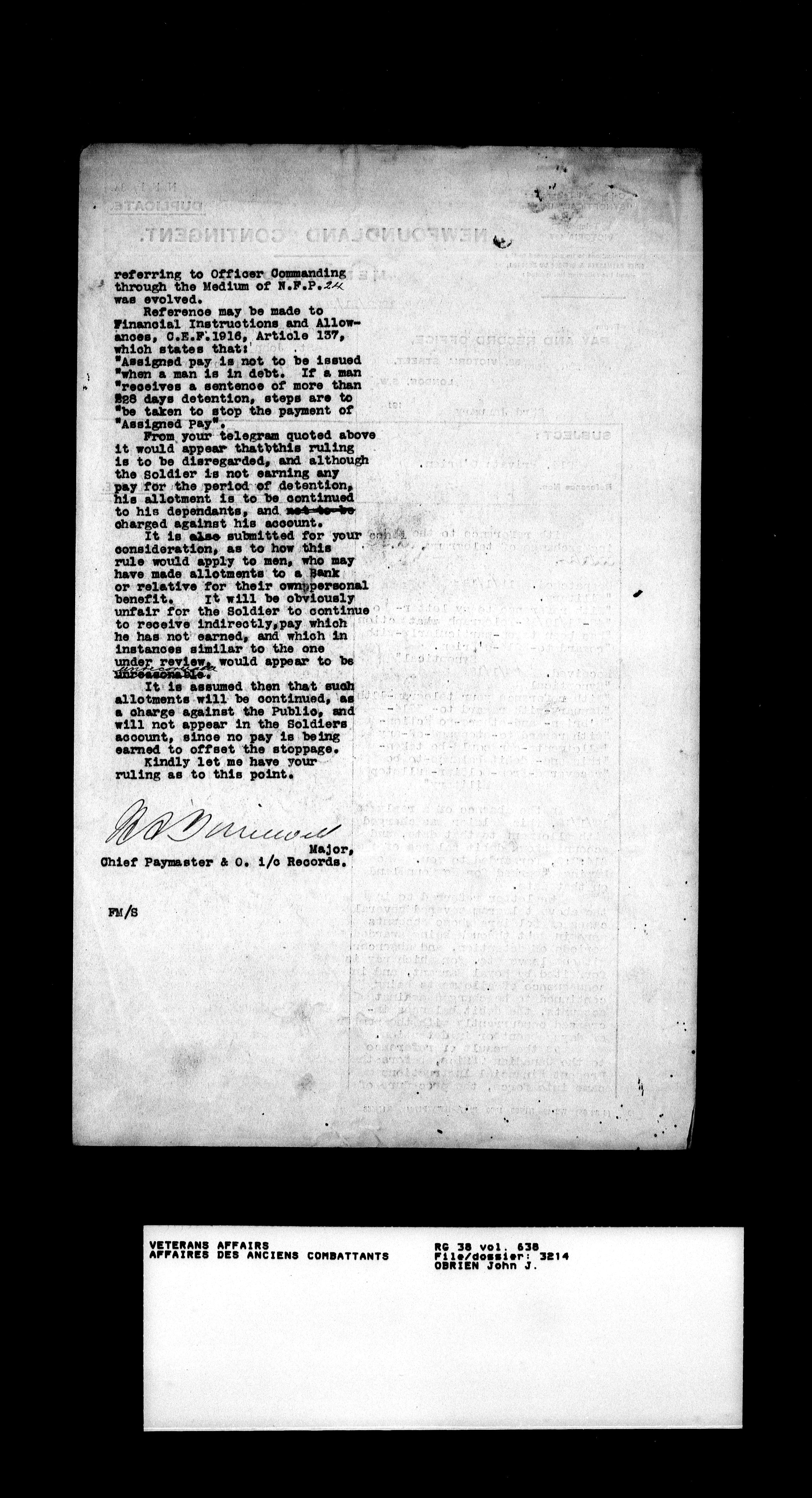 Military service files for members of the Royal Newfoundland Regiment and bandsmen and the Newfoundland Forestry Corps (1914-1919) - 18191