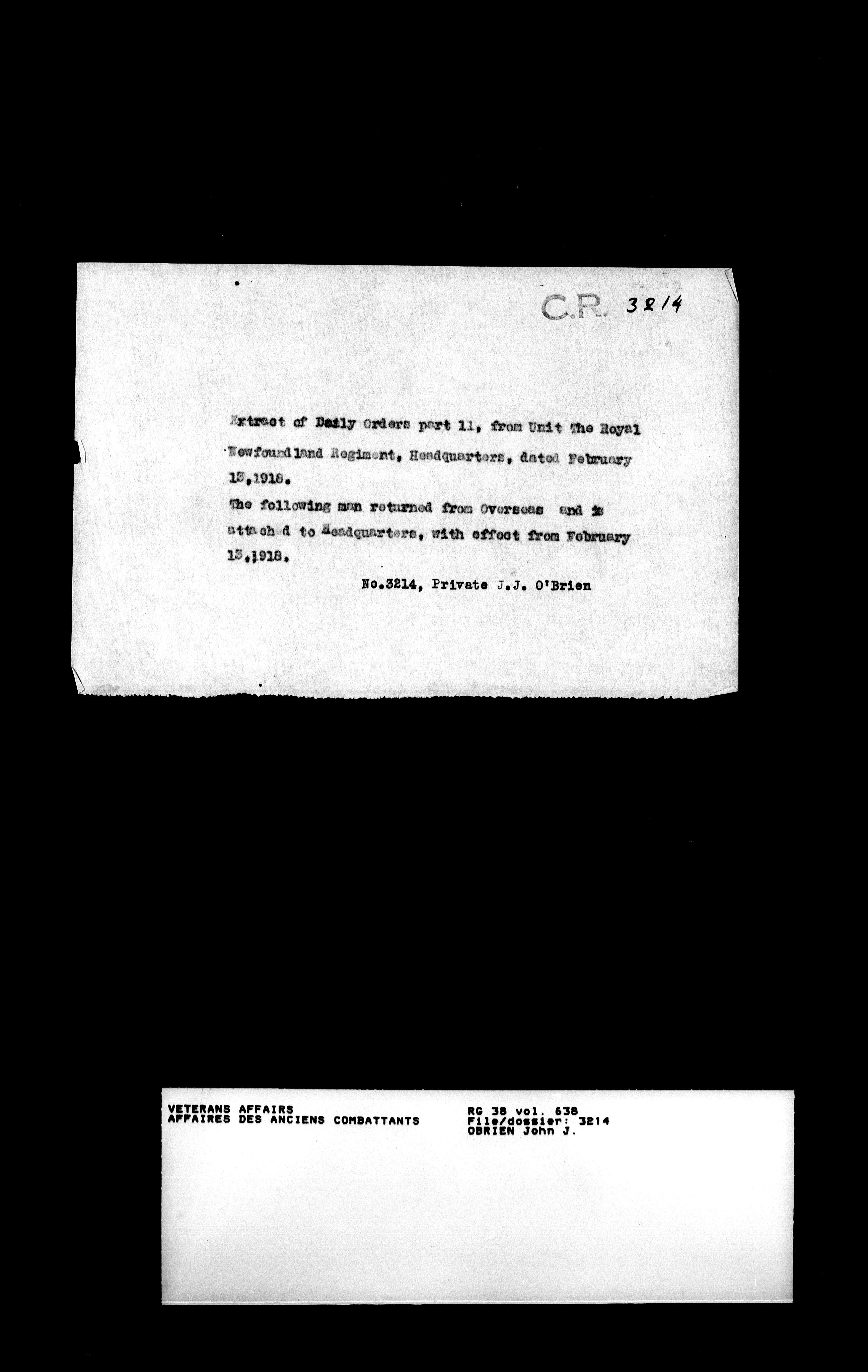 Military service files for members of the Royal Newfoundland Regiment and bandsmen and the Newfoundland Forestry Corps (1914-1919) - 18191
