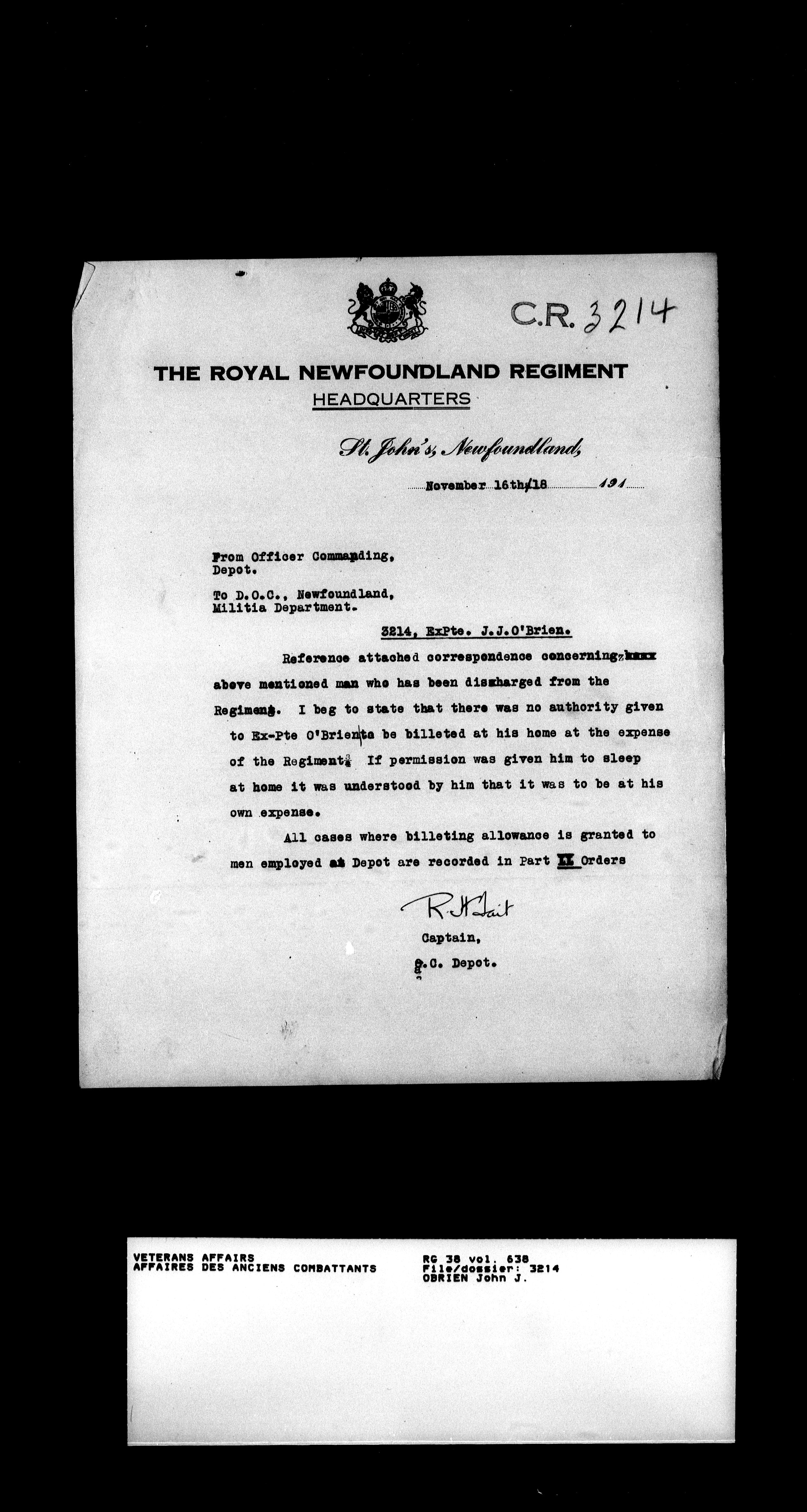 Military service files for members of the Royal Newfoundland Regiment and bandsmen and the Newfoundland Forestry Corps (1914-1919) - 18191