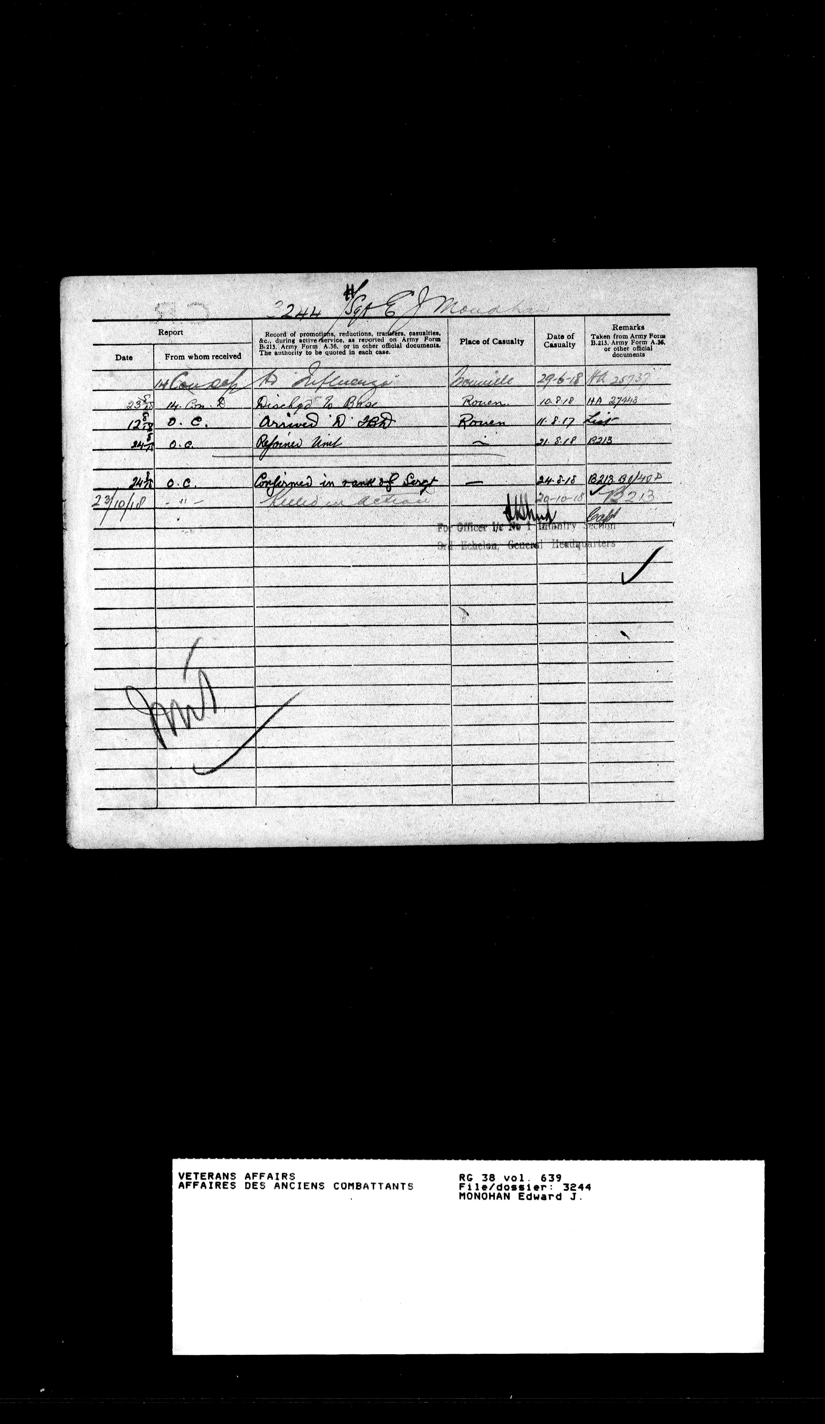 Military service files for members of the Royal Newfoundland Regiment and bandsmen and the Newfoundland Forestry Corps (1914-1919) - 18193