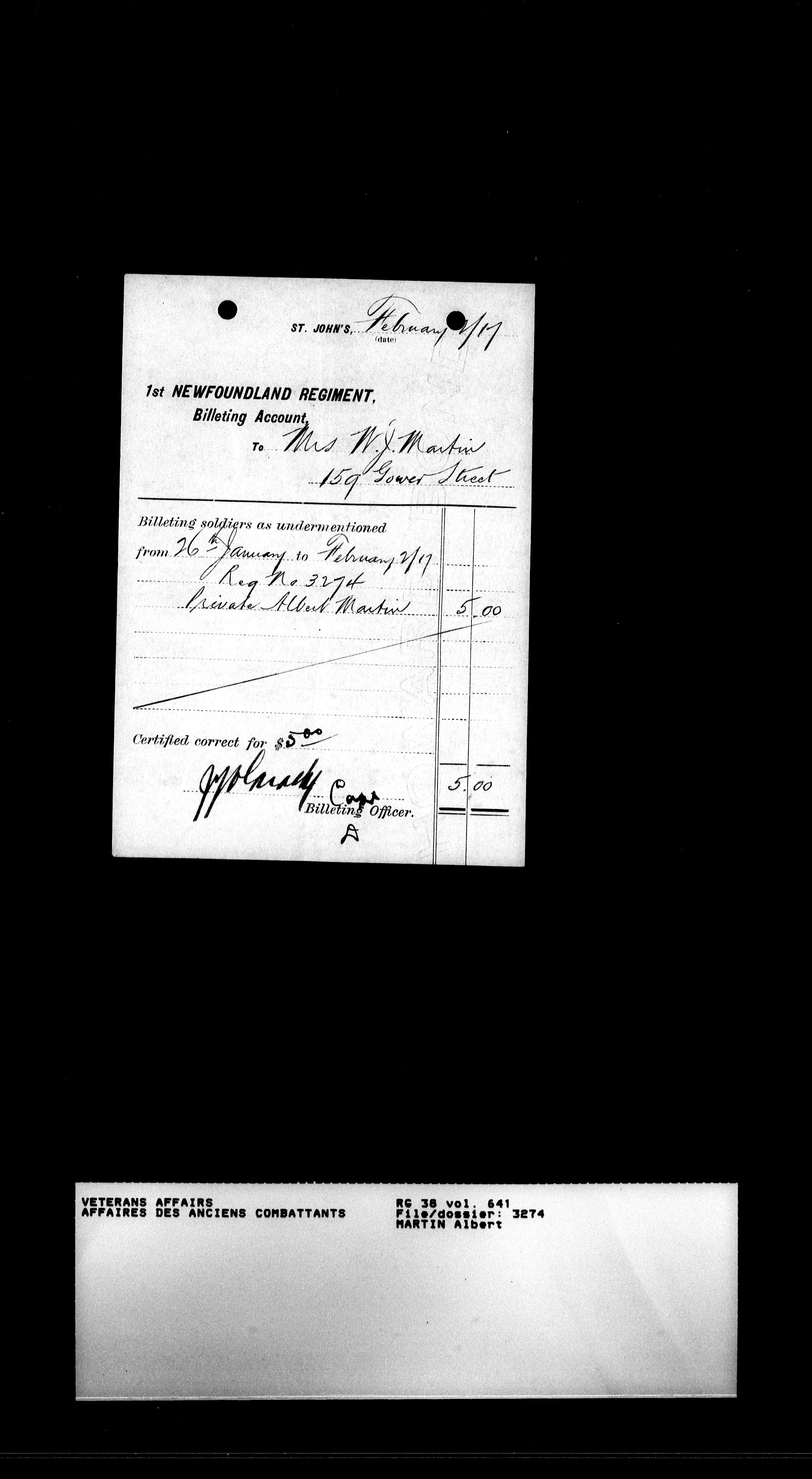Military service files for members of the Royal Newfoundland Regiment and bandsmen and the Newfoundland Forestry Corps (1914-1919) - 18194