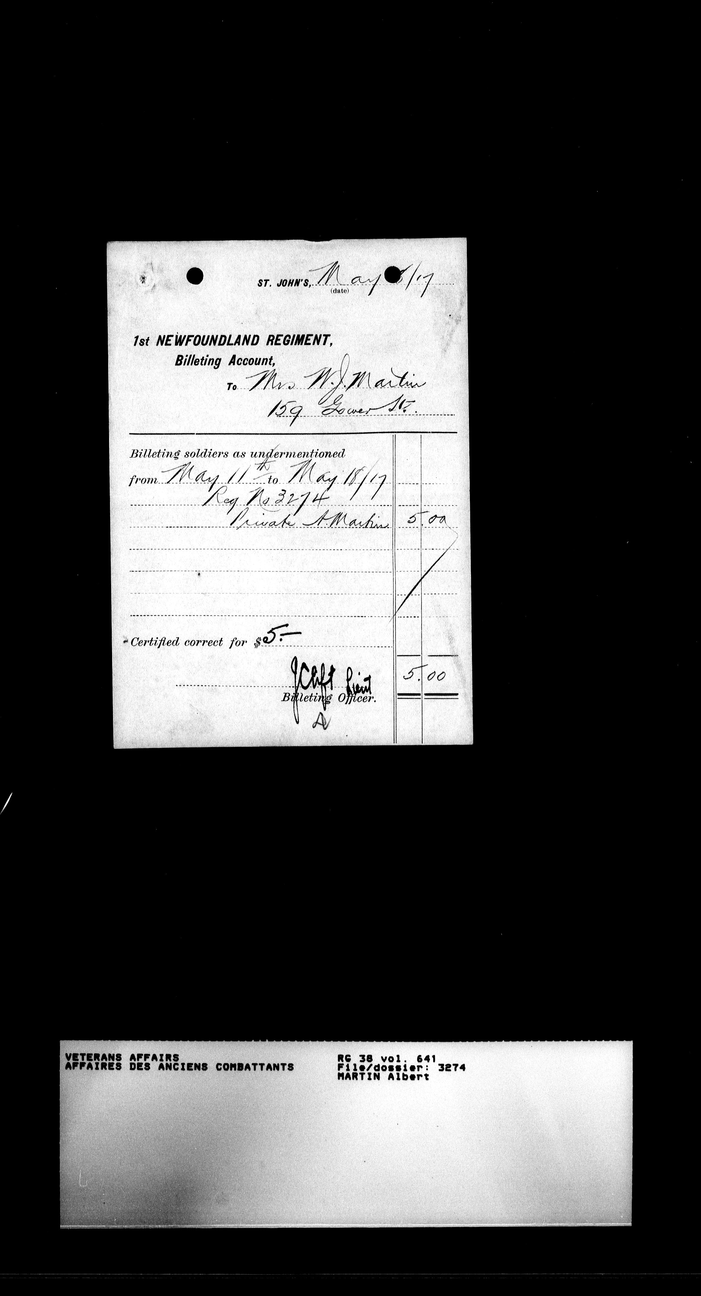 Military service files for members of the Royal Newfoundland Regiment and bandsmen and the Newfoundland Forestry Corps (1914-1919) - 18194