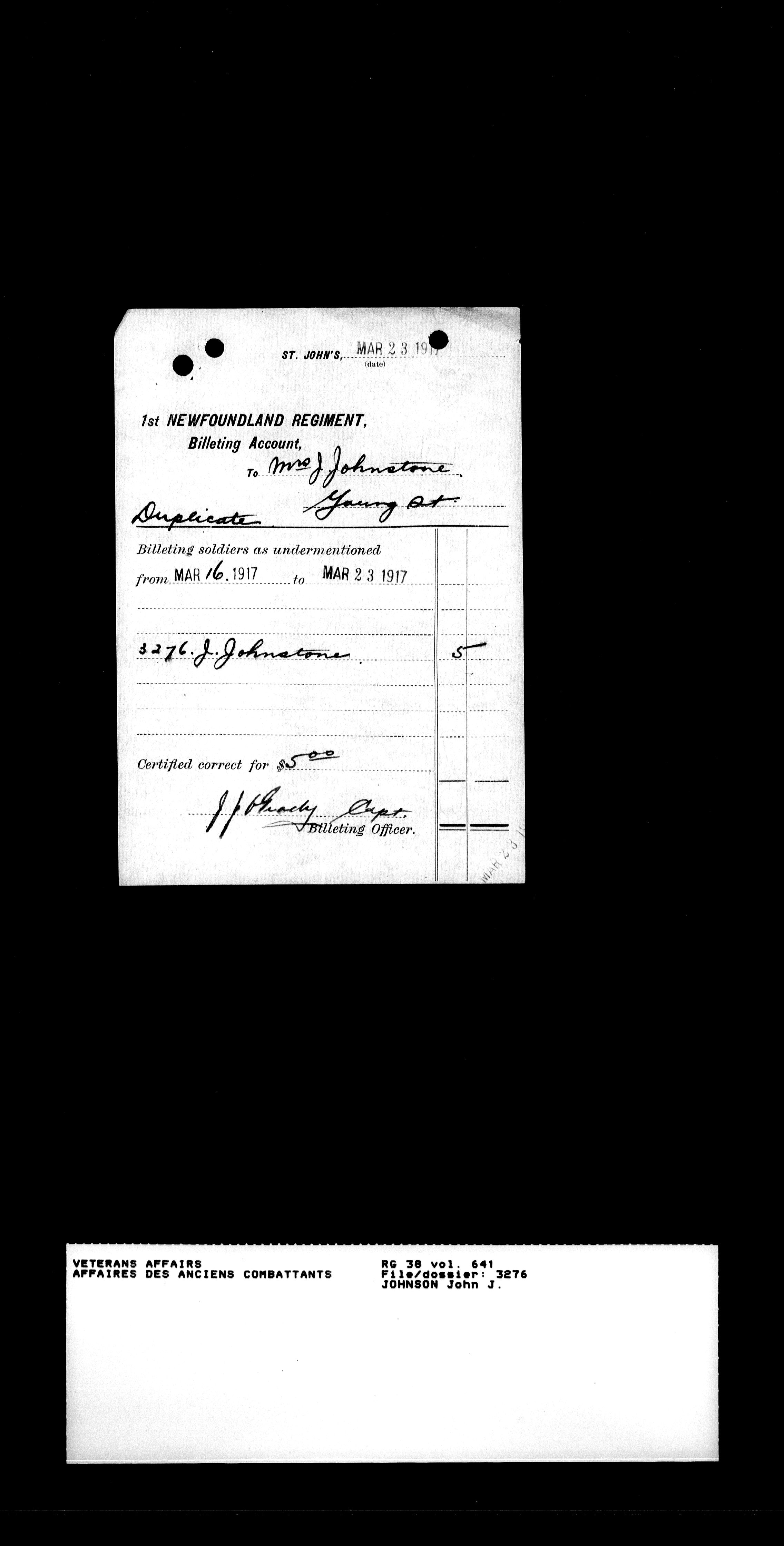 Military service files for members of the Royal Newfoundland Regiment and bandsmen and the Newfoundland Forestry Corps (1914-1919) - 18195