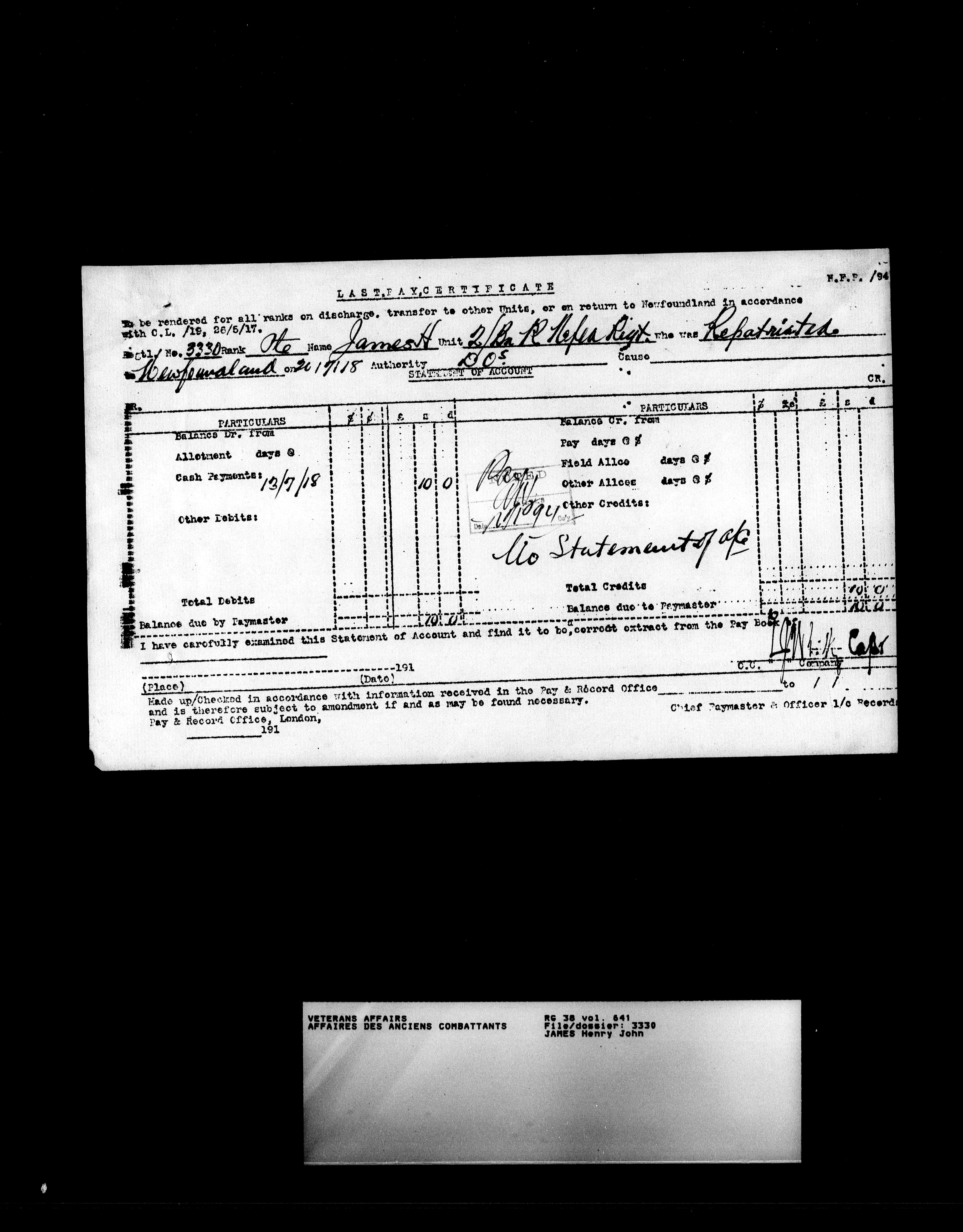 Military service files for members of the Royal Newfoundland Regiment and bandsmen and the Newfoundland Forestry Corps (1914-1919) - 18196