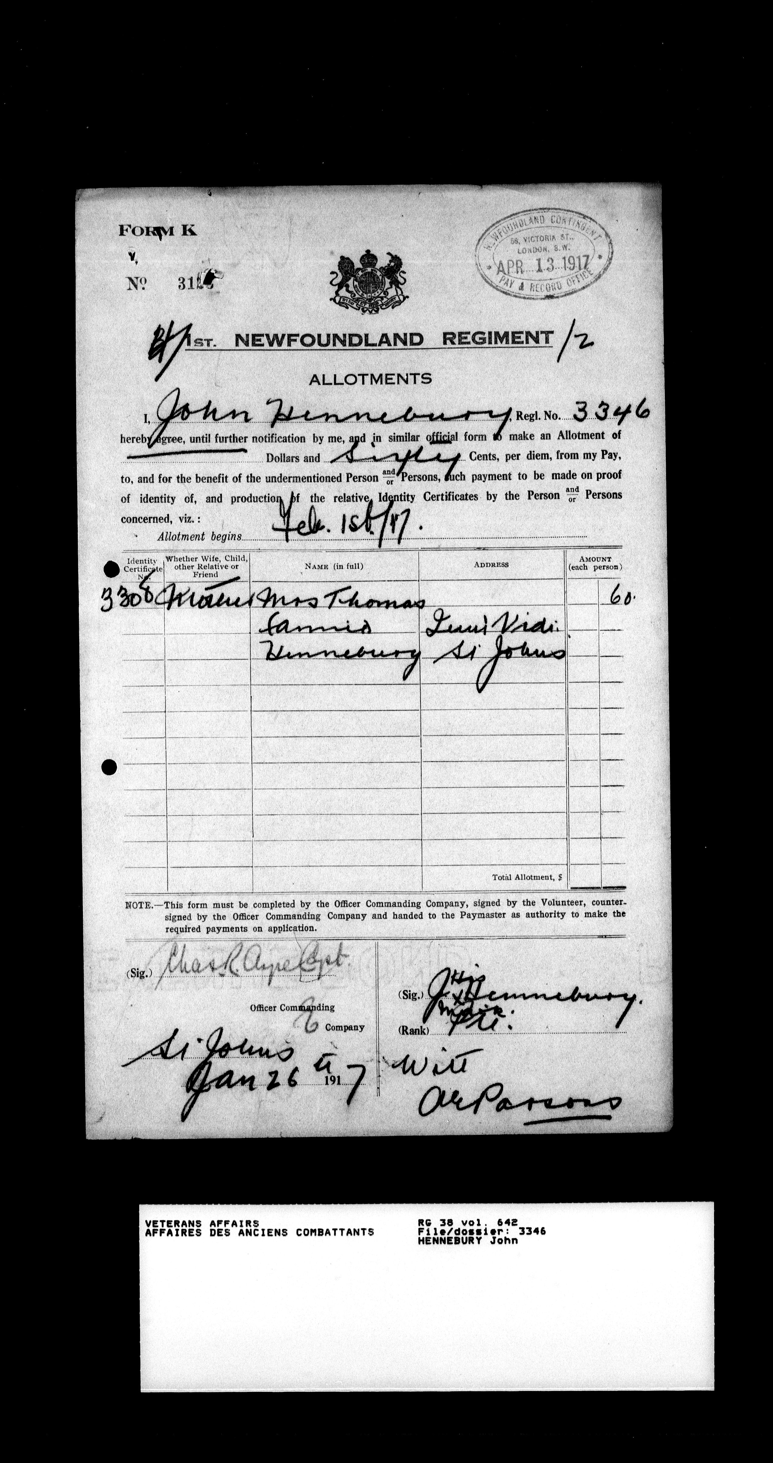 Royal Newfoundland Regiment service files : T-18197
