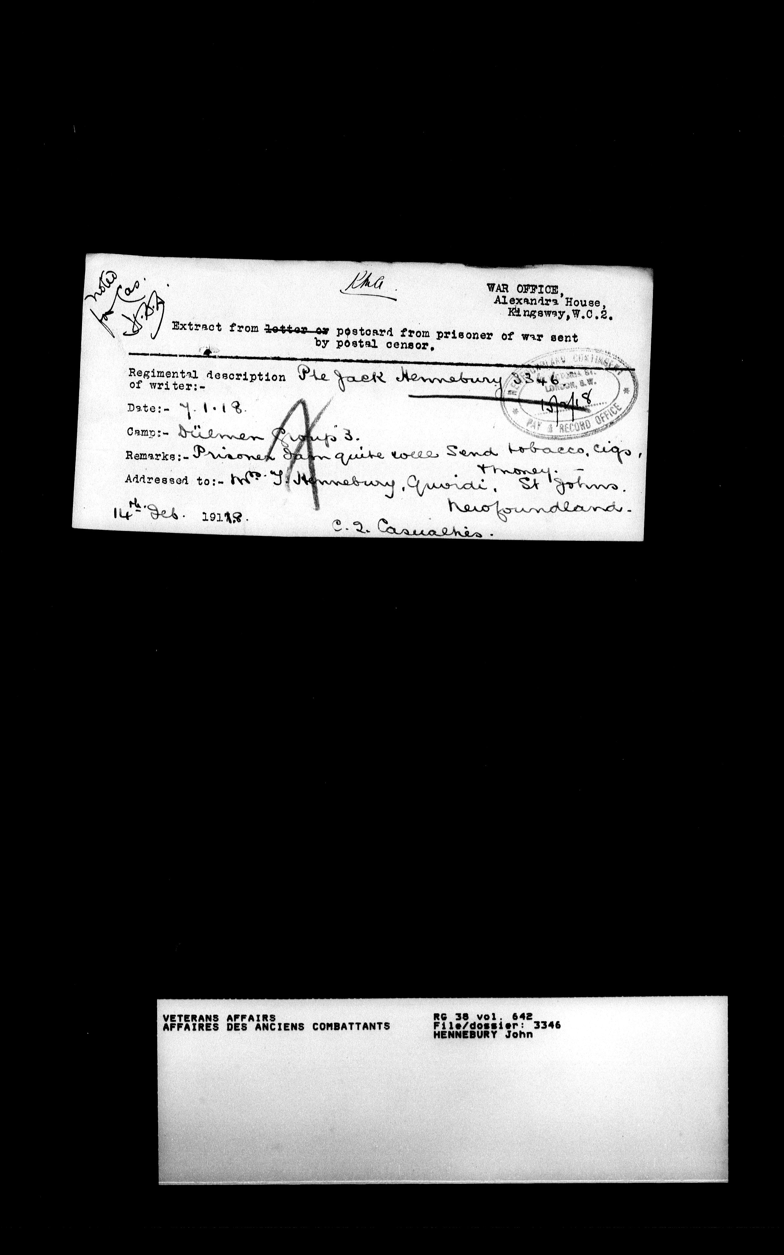 Military service files for members of the Royal Newfoundland Regiment and bandsmen and the Newfoundland Forestry Corps (1914-1919) - 18197