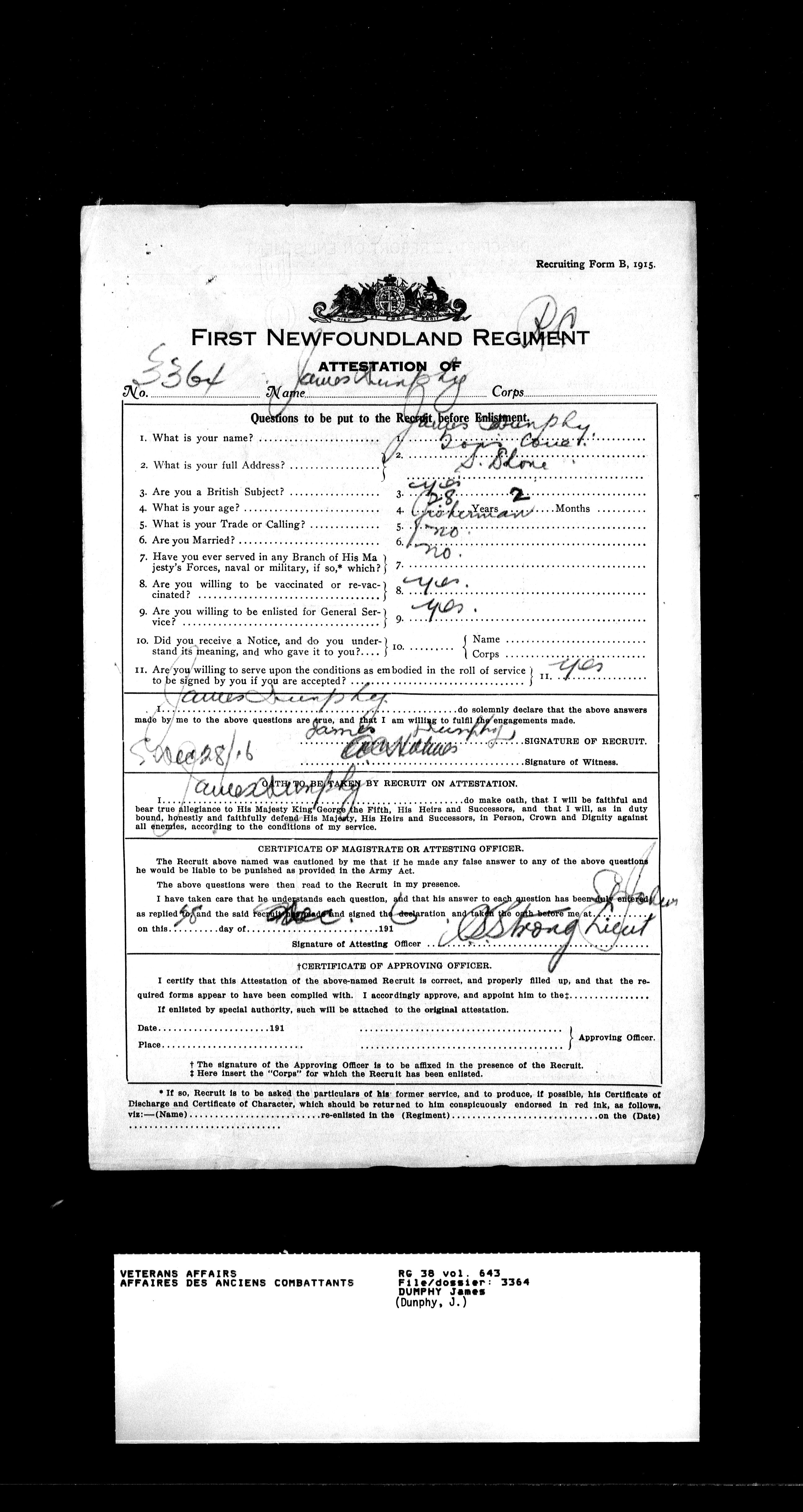 Military service files for members of the Royal Newfoundland Regiment and bandsmen and the Newfoundland Forestry Corps (1914-1919) - 18198