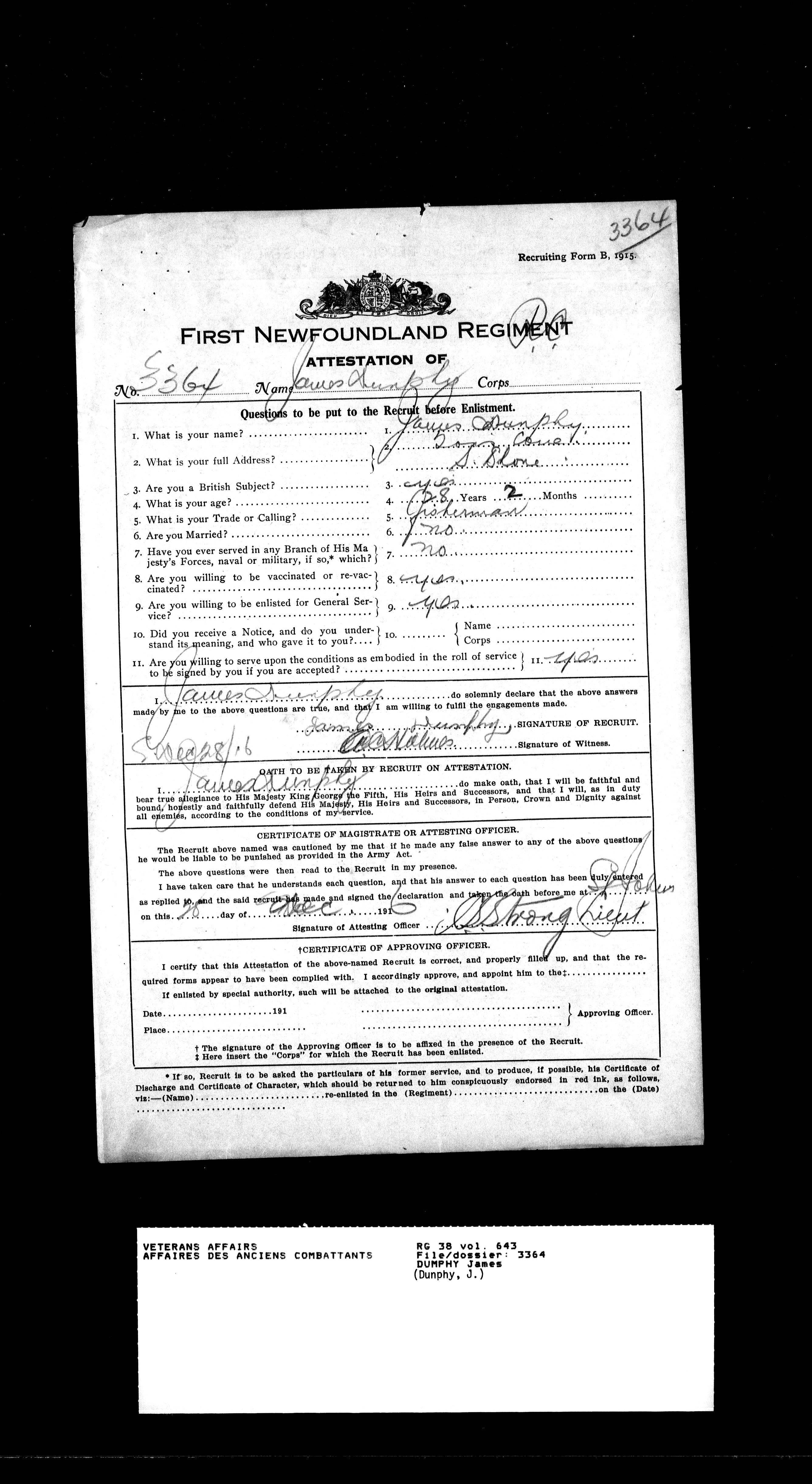 Military service files for members of the Royal Newfoundland Regiment and bandsmen and the Newfoundland Forestry Corps (1914-1919) - 18198
