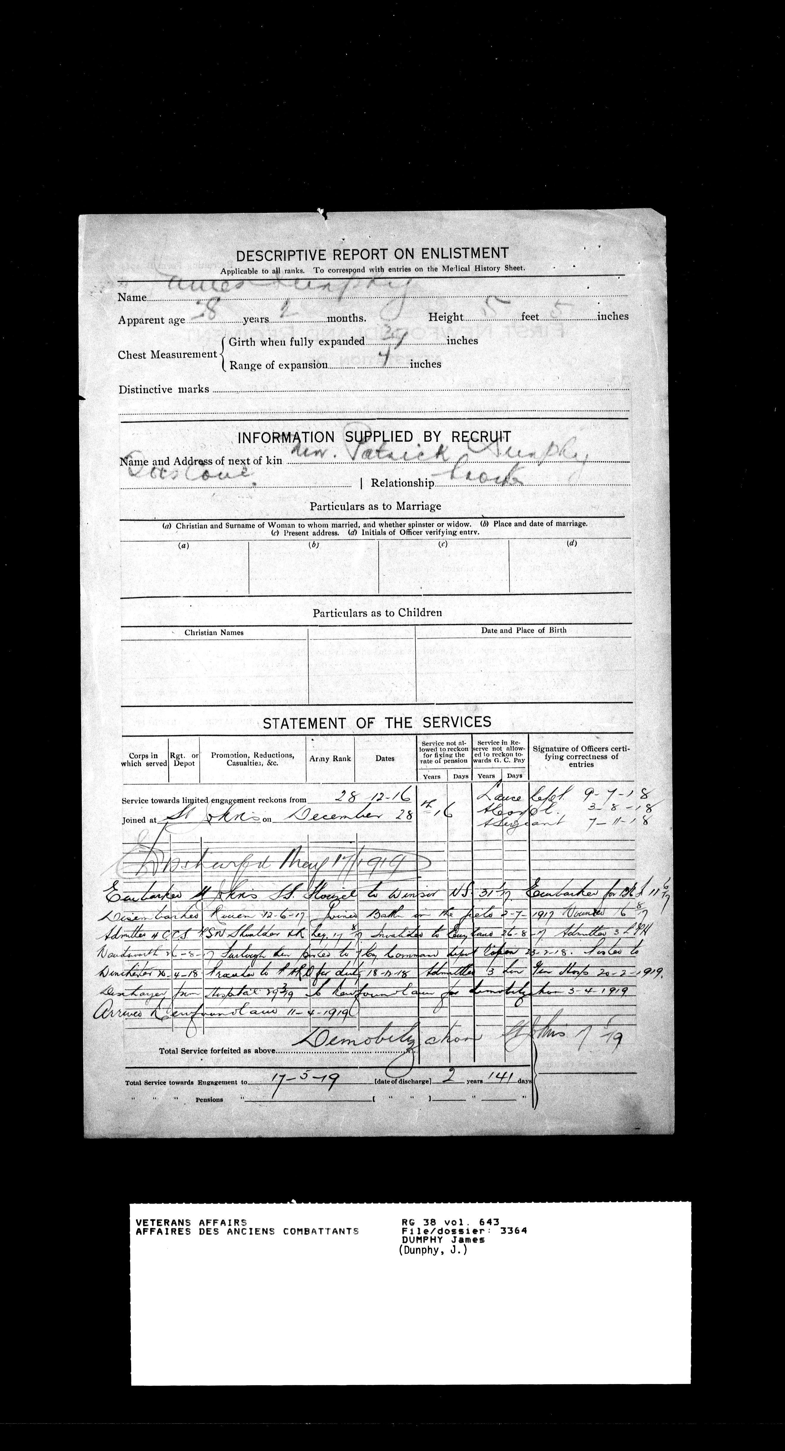 Military service files for members of the Royal Newfoundland Regiment and bandsmen and the Newfoundland Forestry Corps (1914-1919) - 18198
