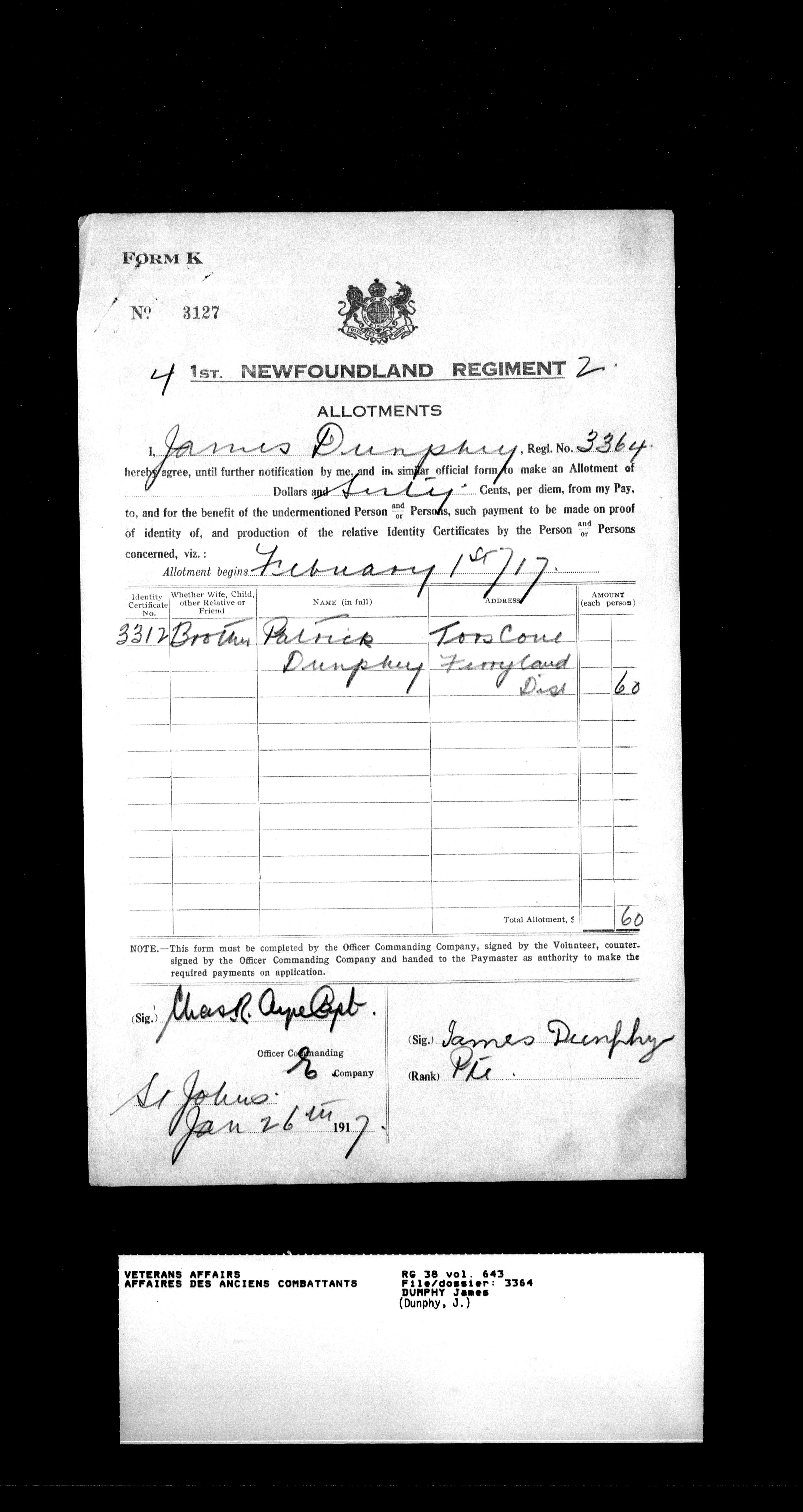 Military service files for members of the Royal Newfoundland Regiment and bandsmen and the Newfoundland Forestry Corps (1914-1919) - 18198