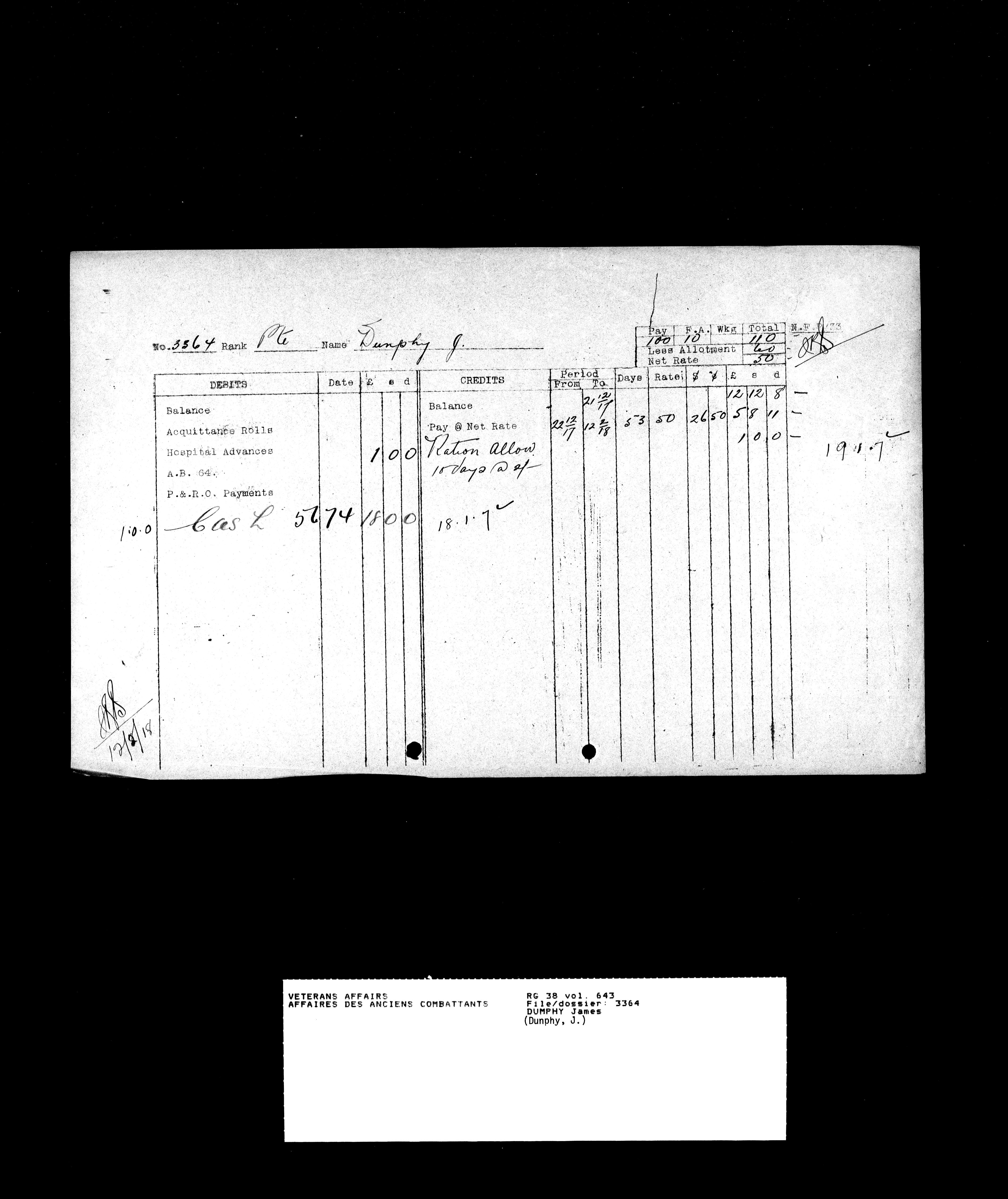 Military service files for members of the Royal Newfoundland Regiment and bandsmen and the Newfoundland Forestry Corps (1914-1919) - 18198
