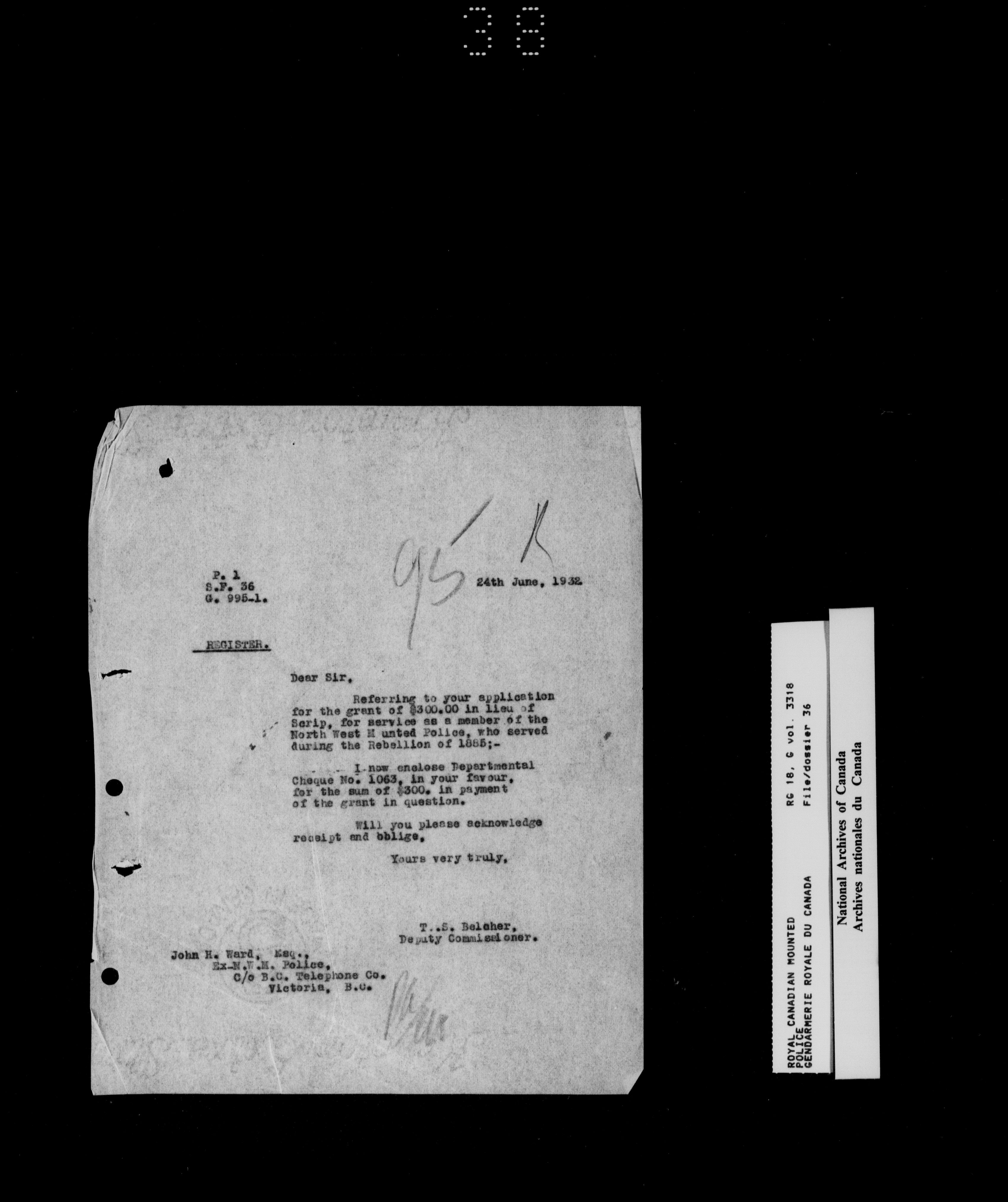 North West Mounted Police : Personnel files for members of the NWMP (1873-1904) : T-18202