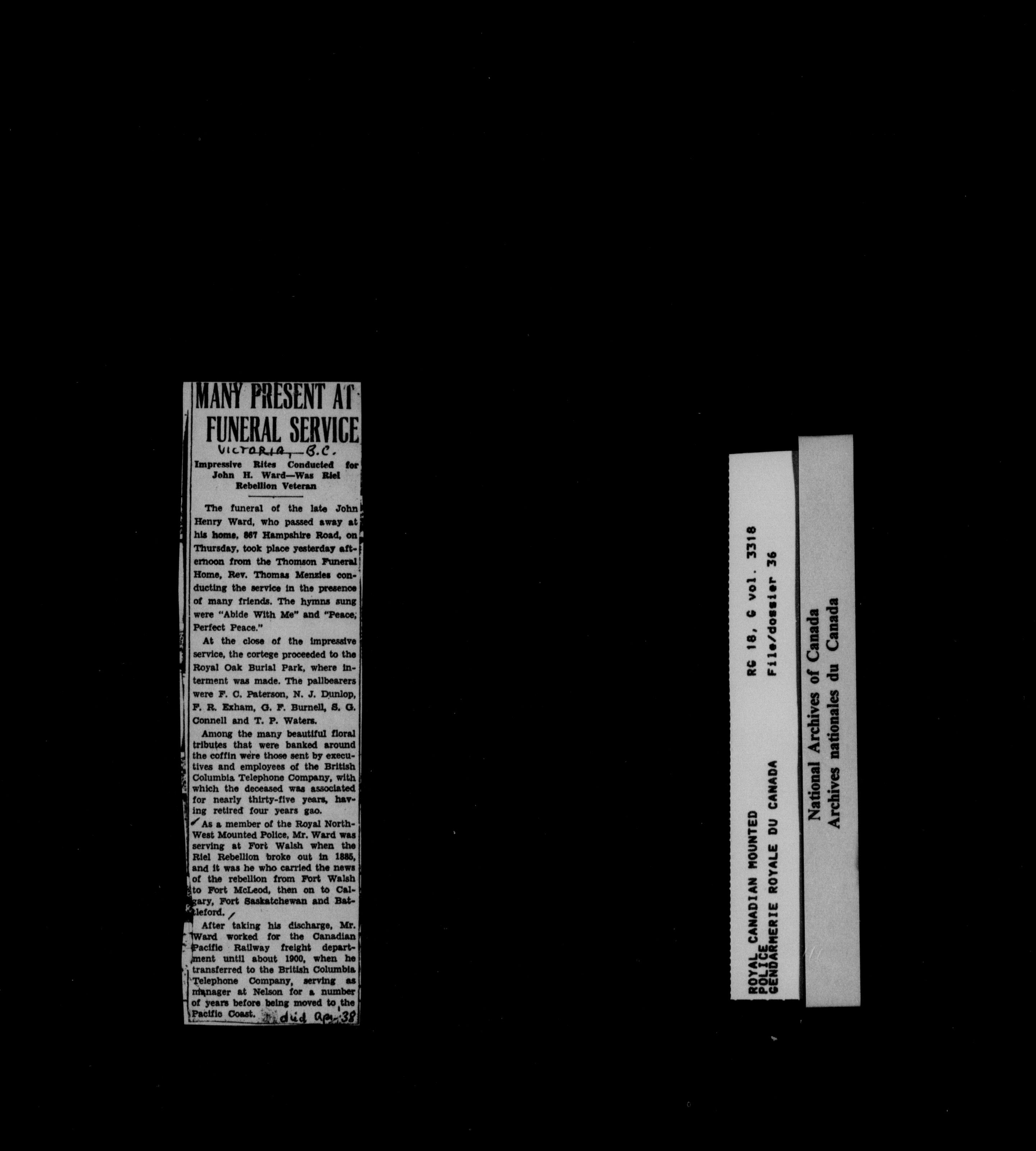 North West Mounted Police : Personnel files for members of the NWMP (1873-1904)