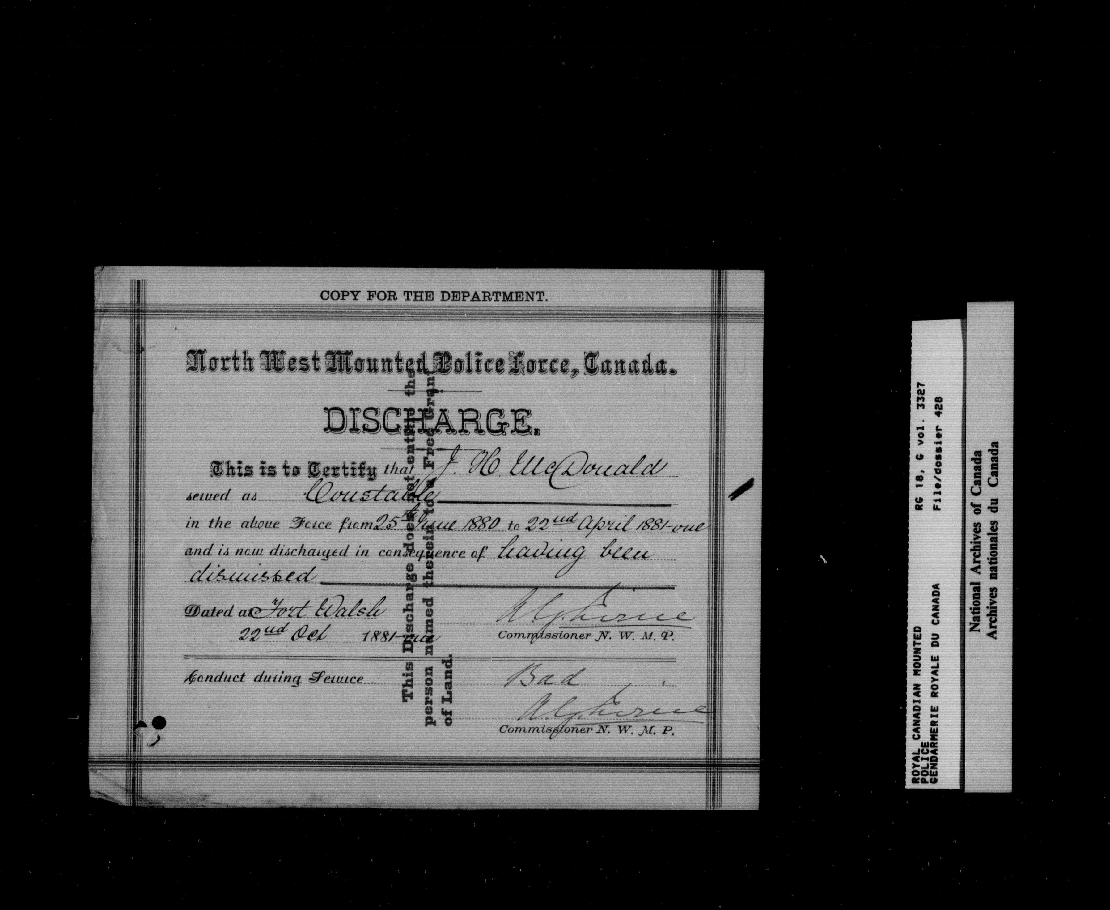 North West Mounted Police : Personnel files for members of the NWMP (1873-1904)