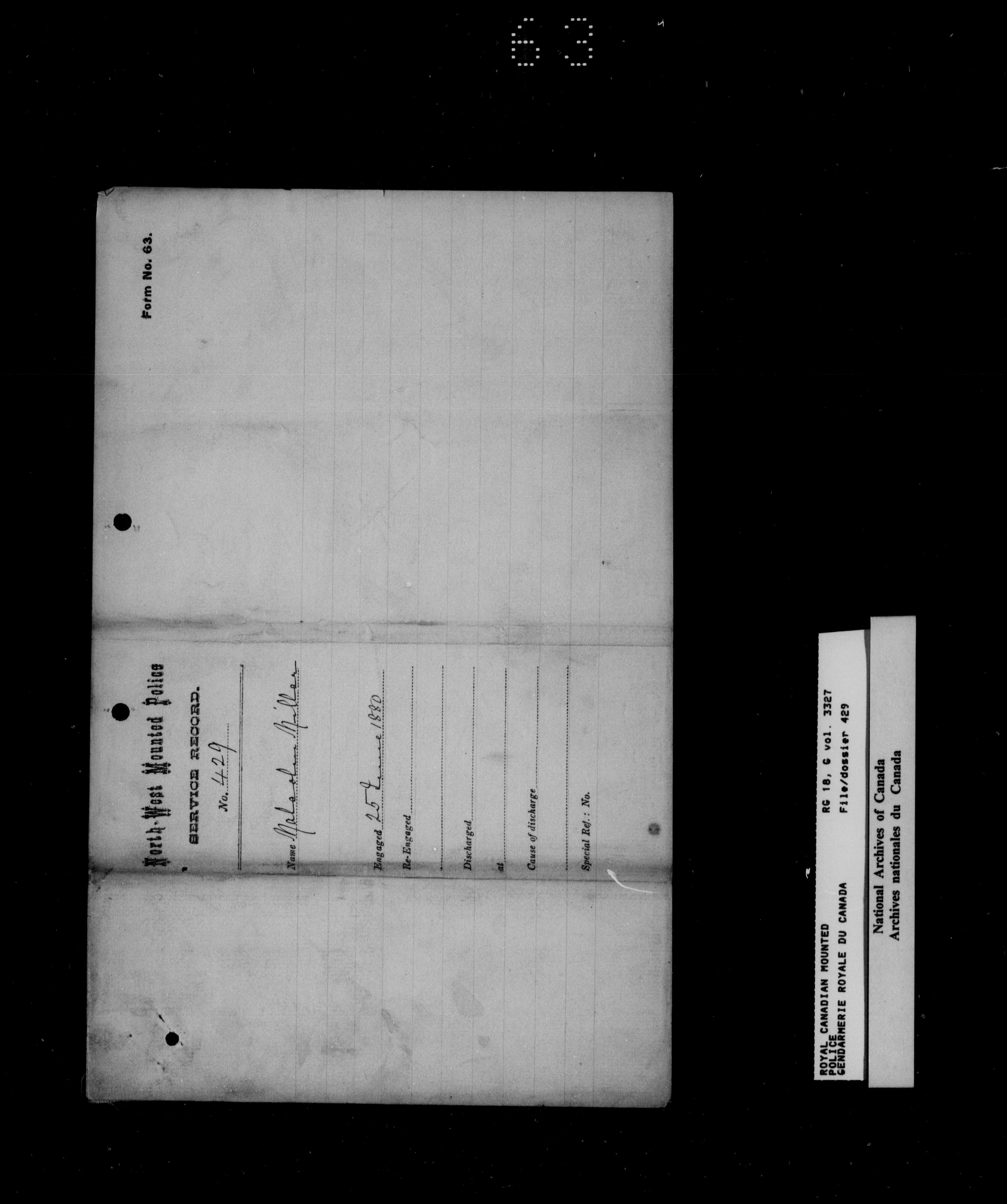 North West Mounted Police : Personnel files for members of the NWMP (1873-1904)