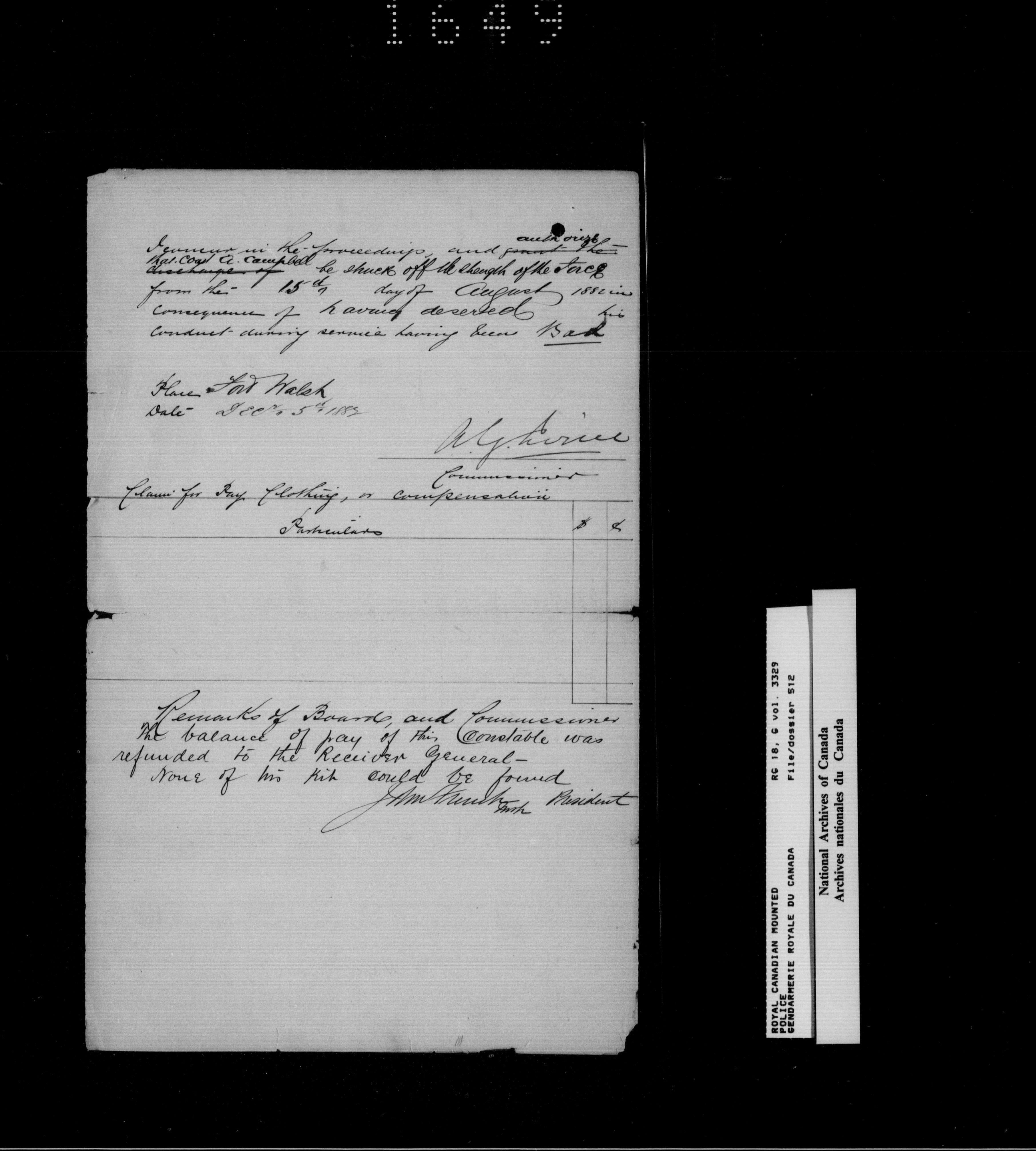 North West Mounted Police : Personnel files for members of the NWMP (1873-1904)