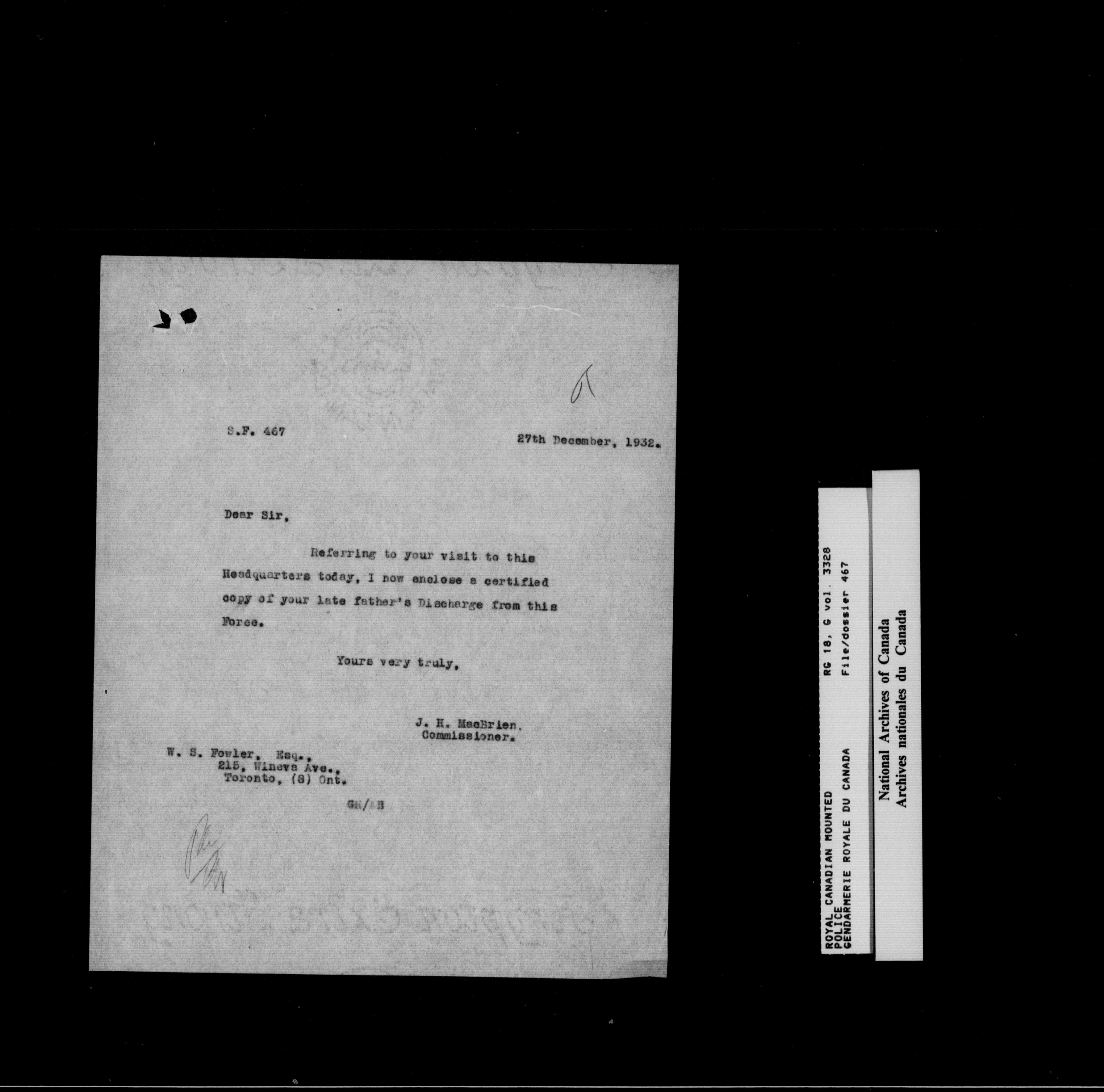 North West Mounted Police : Personnel files for members of the NWMP (1873-1904)