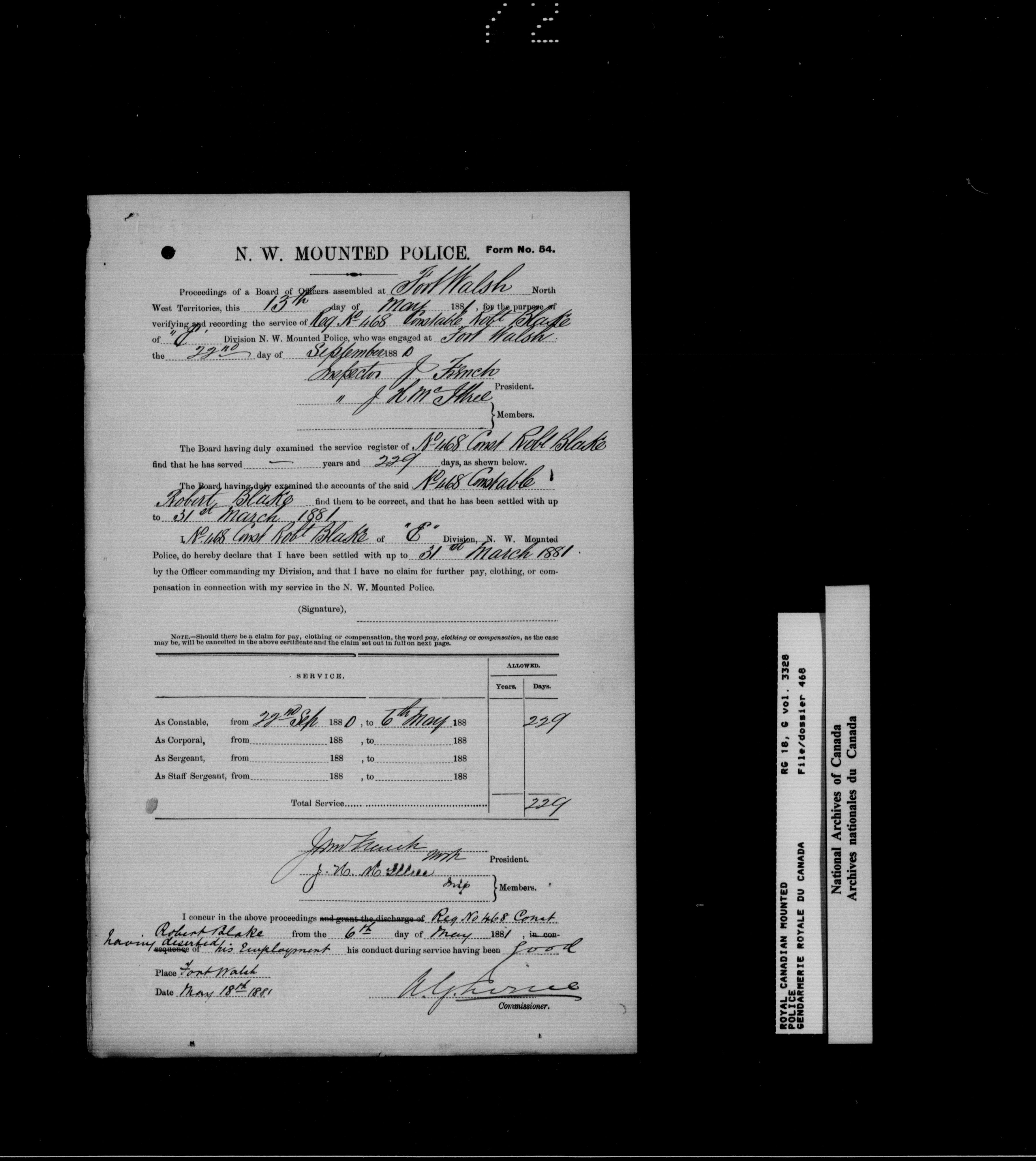 North West Mounted Police : Personnel files for members of the NWMP (1873-1904)