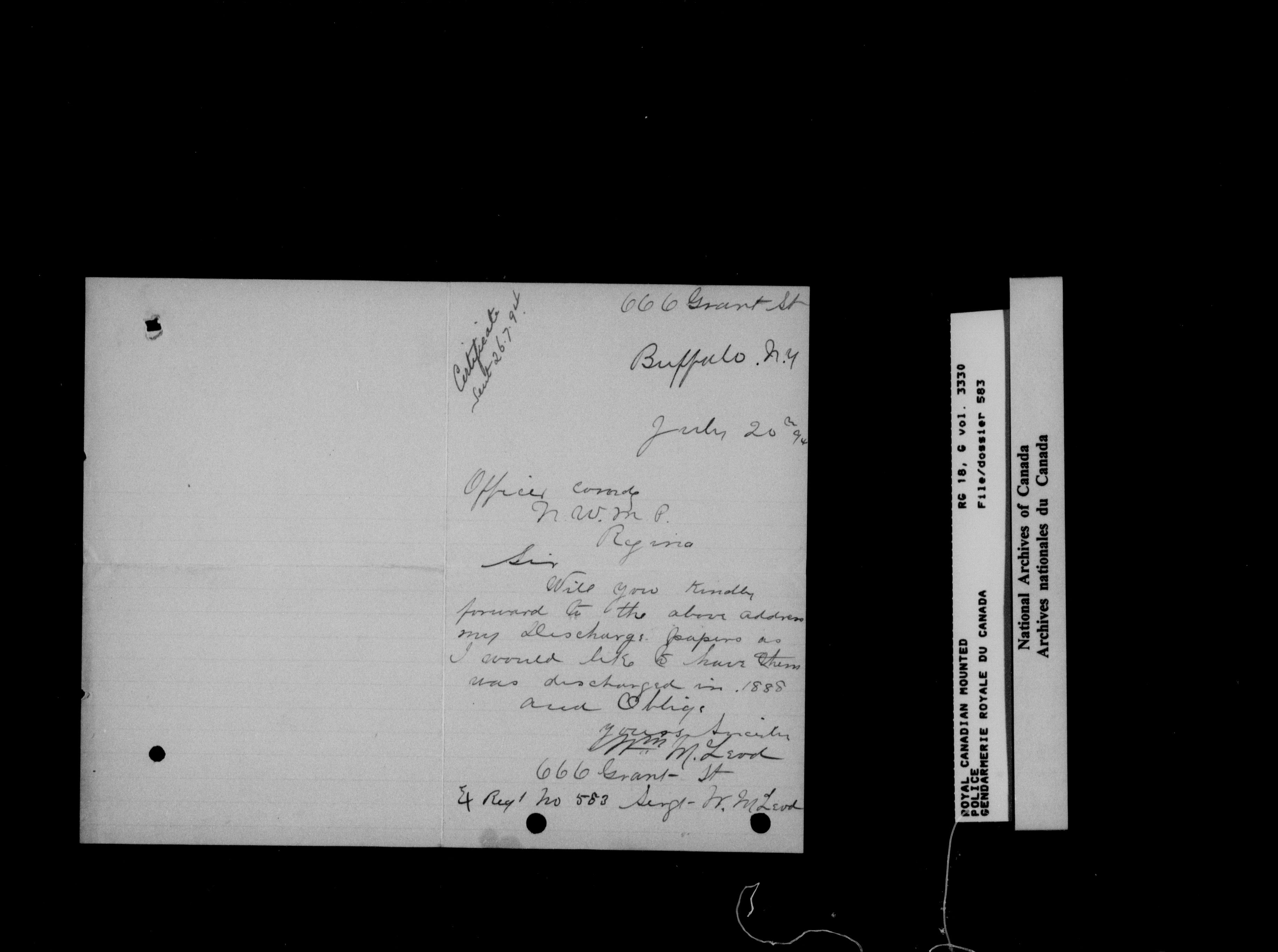 North West Mounted Police : Personnel files for members of the NWMP (1873-1904)