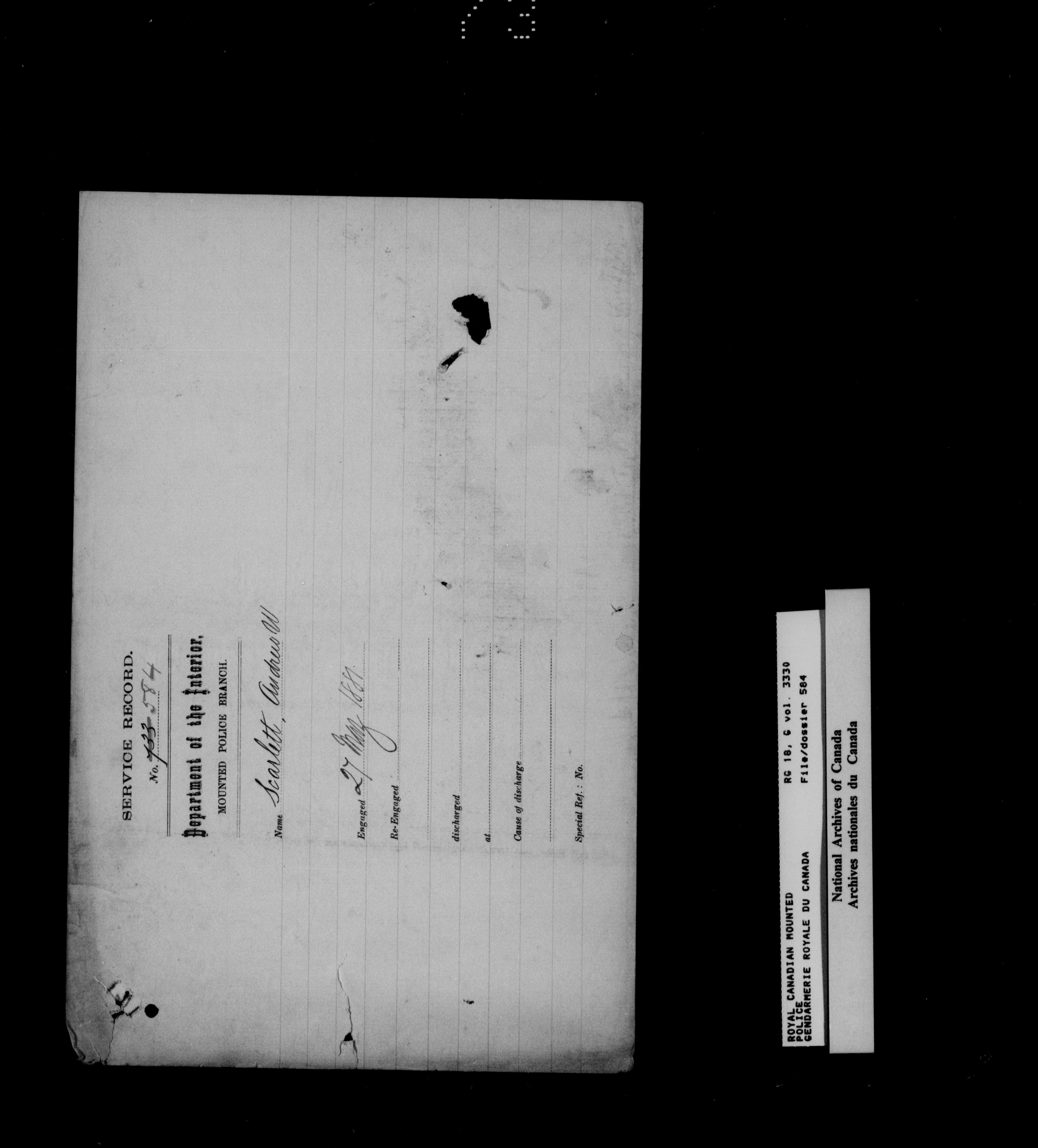 North West Mounted Police : Personnel files for members of the NWMP (1873-1904)