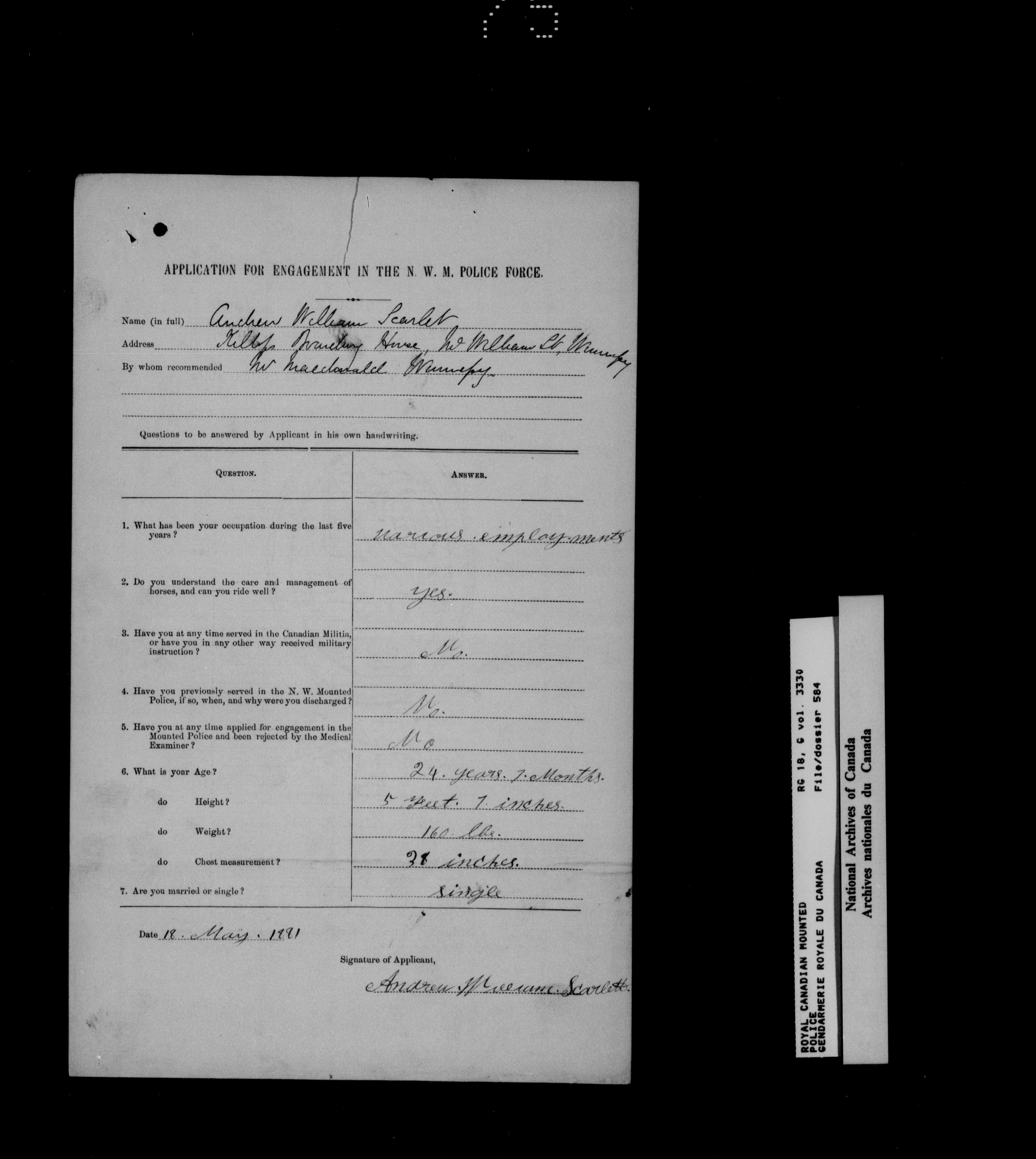 North West Mounted Police : Personnel files for members of the NWMP (1873-1904)