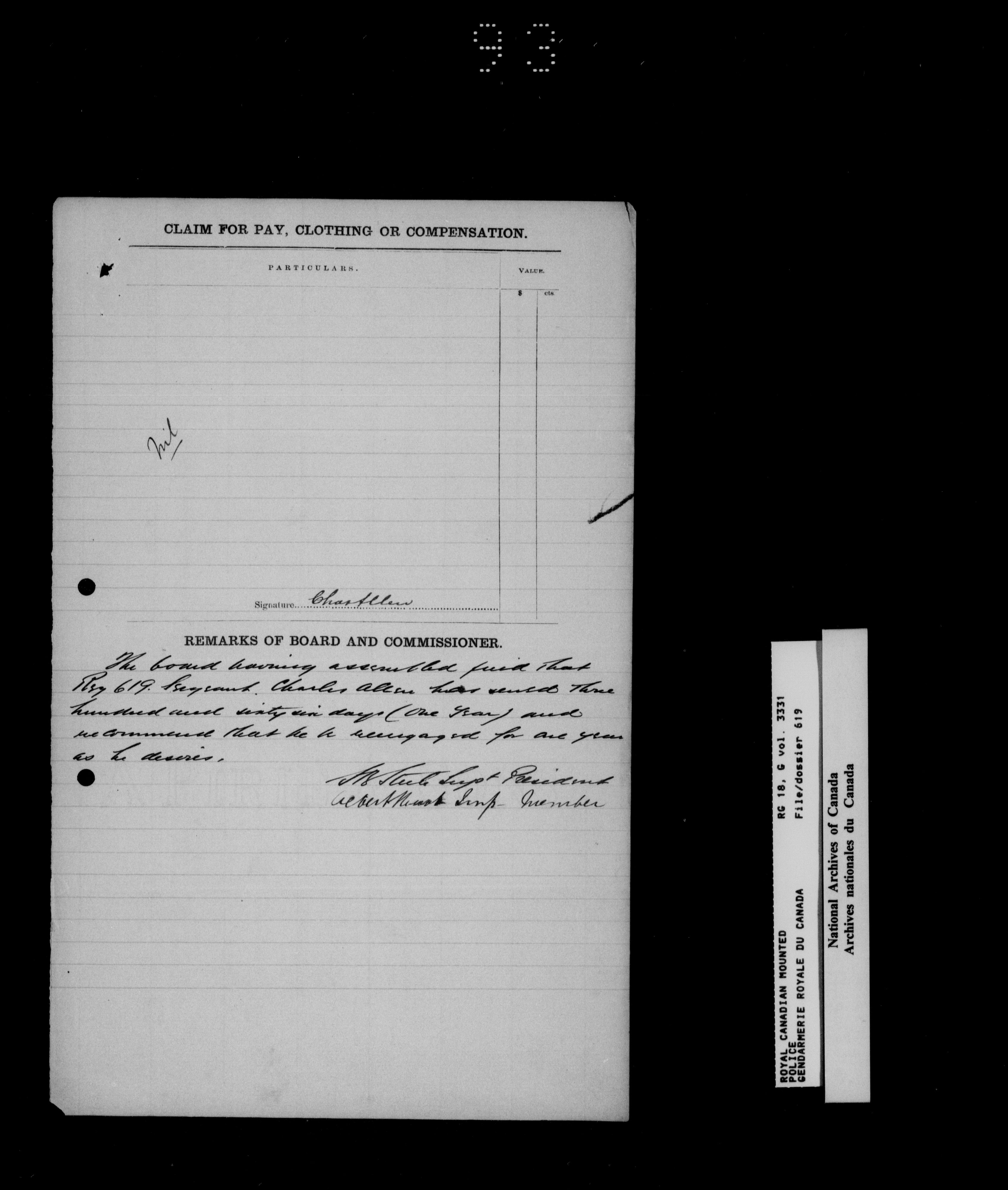 North West Mounted Police : Personnel files for members of the NWMP (1873-1904)