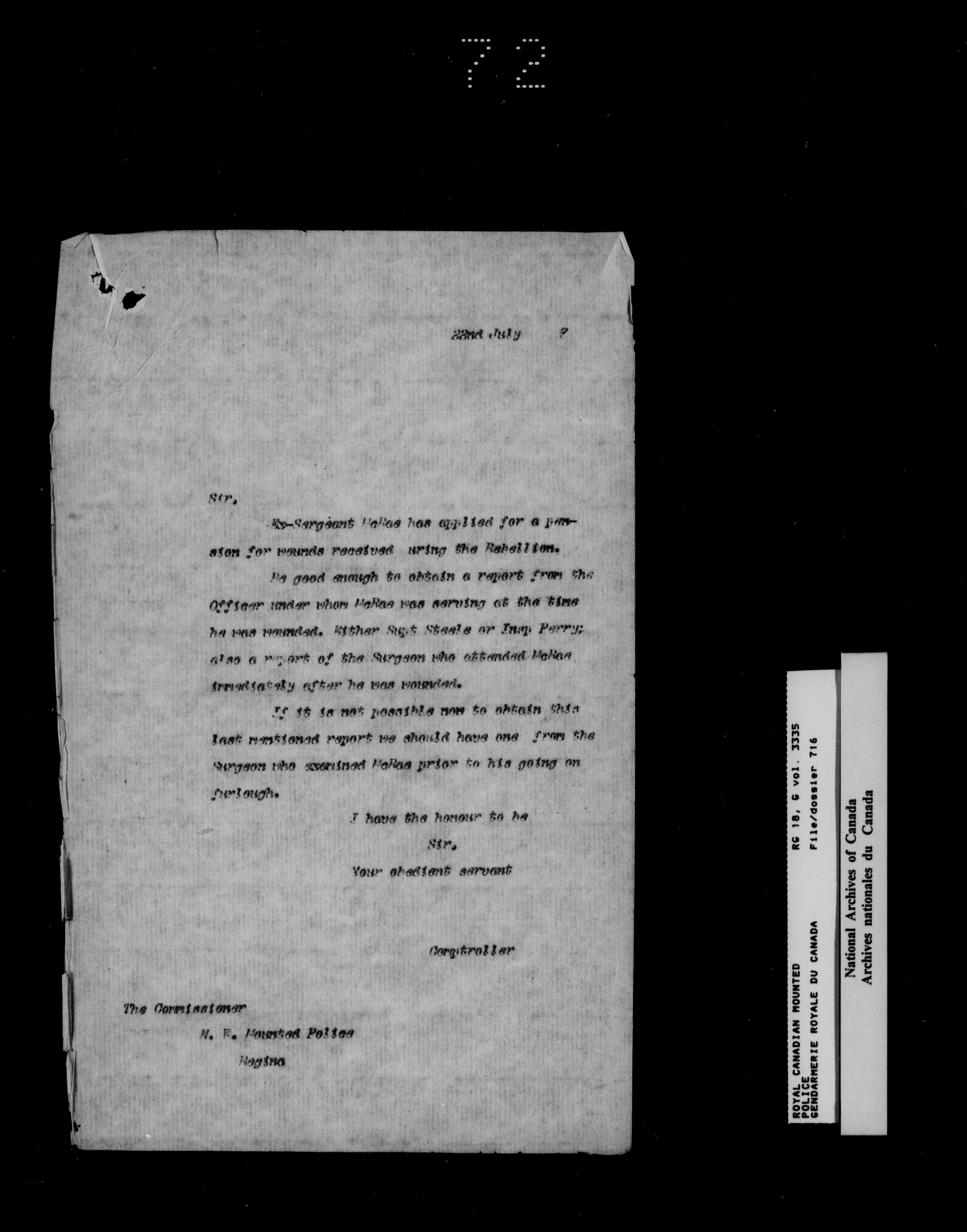 North West Mounted Police : Personnel files for members of the NWMP (1873-1904)