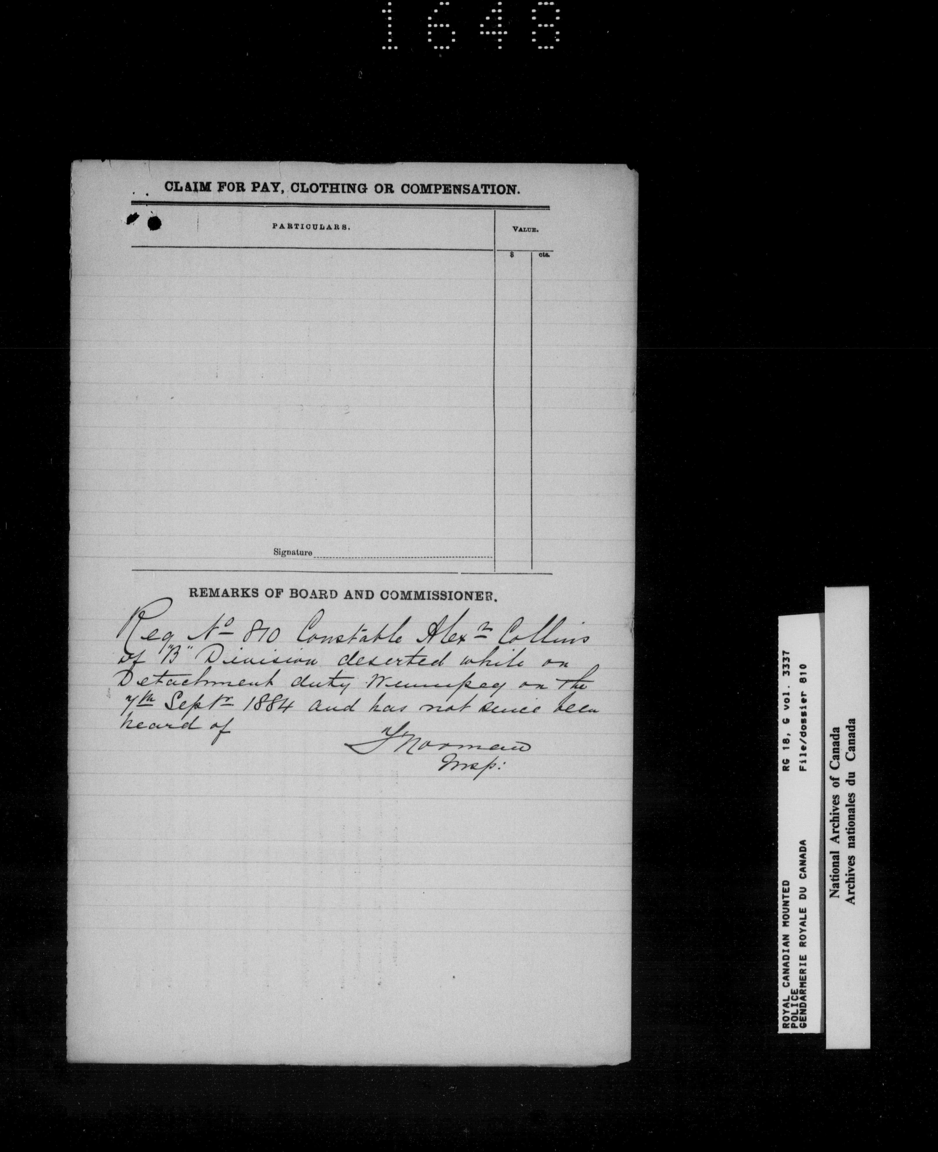 North West Mounted Police : Personnel files for members of the NWMP (1873-1904)